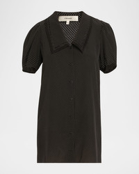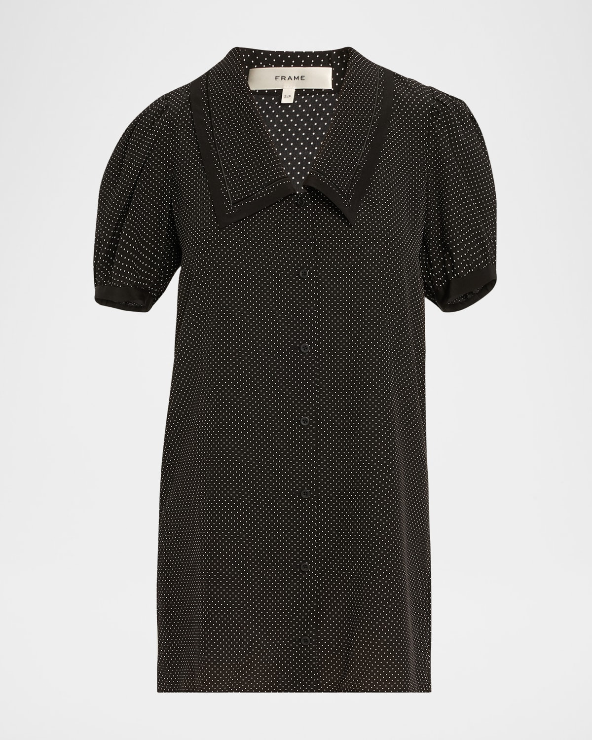 - FRAME "The Polka Dot Sailor Dress" crafted from luxurious silk - Wide sailor collar; V neckline - Short puff sleeves with button cuffs - Shirtdress silhouette - Hem falls above the knee - Button-front - Silk - Dry clean - Imported