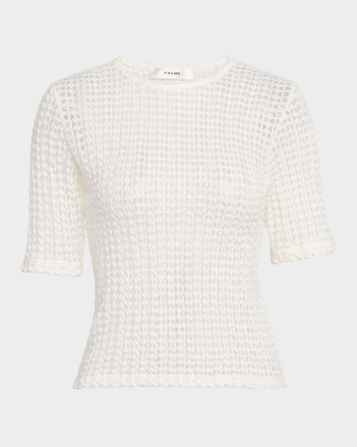 - FRAME "The Popcorn Top" in textured knit - Crew neckline - Long sleeves - Fitted - Hem sits at the hip - Pullover style - Organic cotton/polyester/elastane - Dry clean - Imported