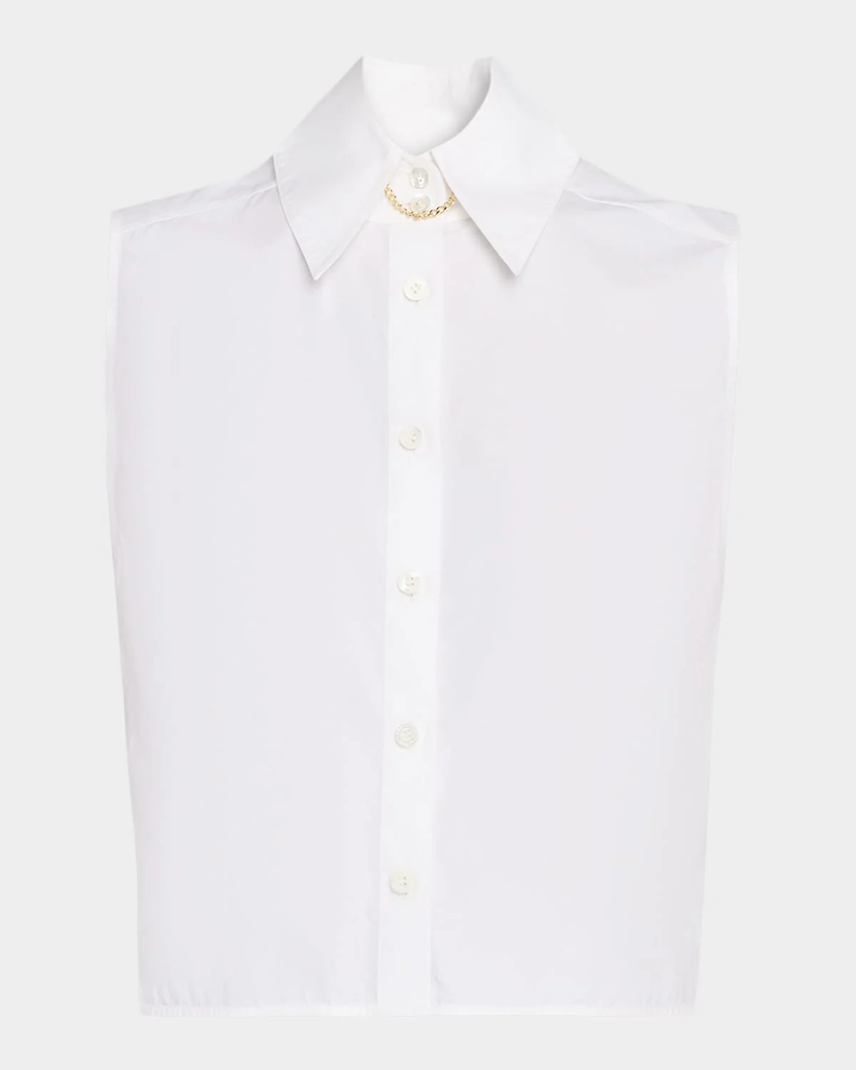 - FRAME "The Prep" shirt in crisp cotton poplin is finished with a chain detail for a sophisticated yet edgy touch - Point collar - Sleeveless - Boxy fit - High-low hem - Button-front - Cotton - Machine wash cold or dry clean - Imported