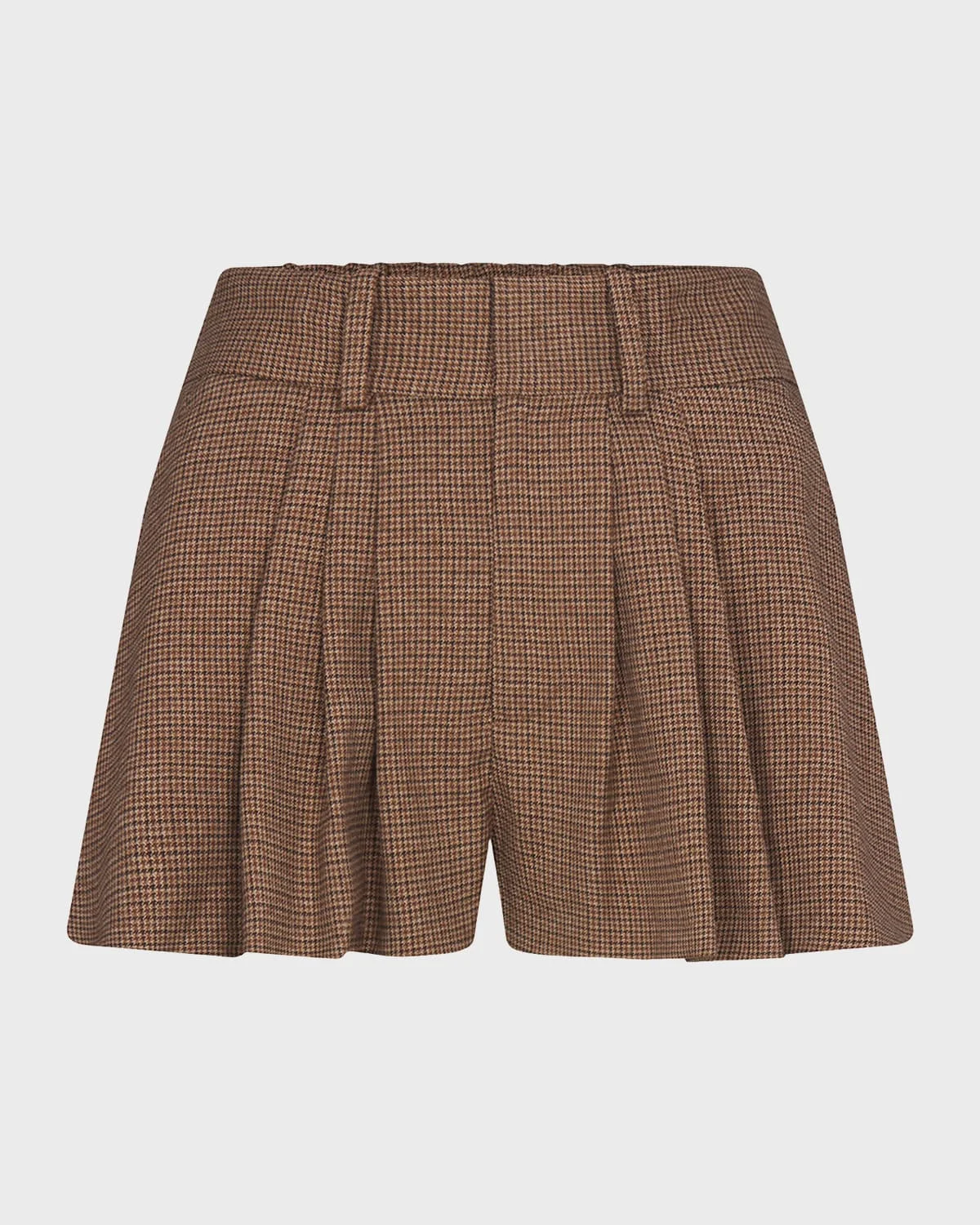 FRAME soft woolblend shorts finished with a pleated front in plaid Approx. 12.5" rise High rise Back elasticized waistband Side pockets Tailored silhouette Hook/zip fly Polyester/viscose/virgin wool Dry clean Imported