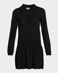 The "Smart Polo" dress by FRAME is crafted from cozy wool with waistaccentuating gathered detailing Approx. 32.3"L from shoulder to hem Polostyle collar; partial button front Long sleeves; ribbed cuffs Dropped waist Hem falls above the knee Slipover style Merino wool Imported