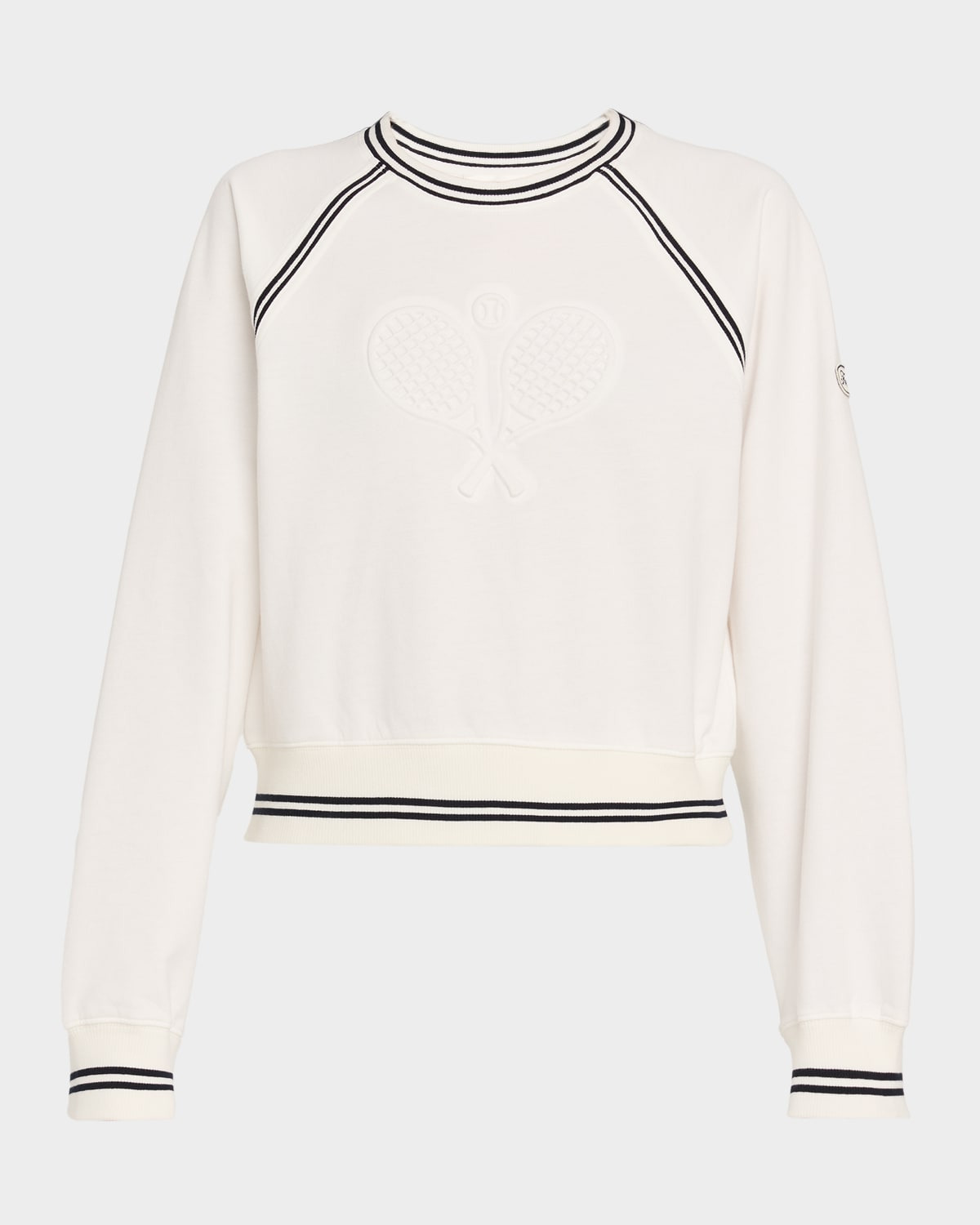 - Perfect for on or off the court, FRAME's sweatshirt with stripe trim adds the sporty touch you need. - Crew neckline - Long raglan sleeves - Classic fit - Hem sits at the hip - Pullover style - Cotton - Machine wash cold, tumble dry - Imported