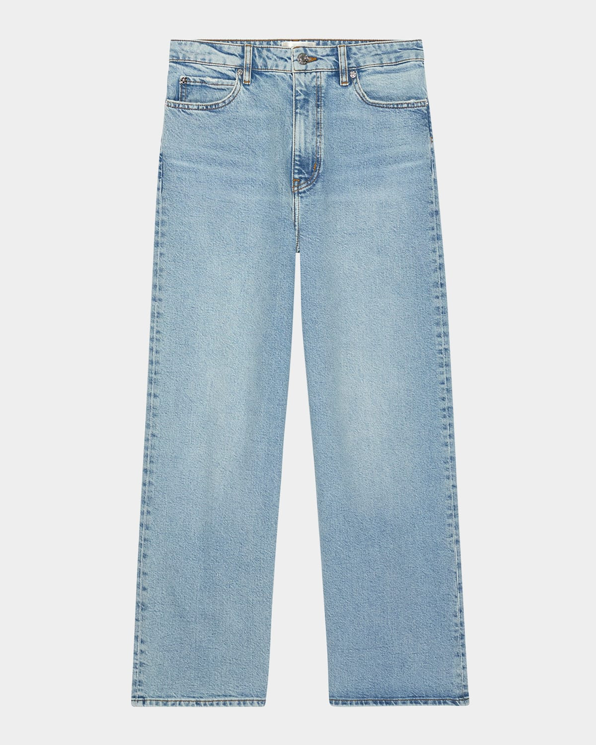 - FRAME "The Wide" jeans in faded dark-wash denim - Approx. 11.9" rise; 27.5" inseam - High rise - Five-pocket style - Easy fit - Cropped length - Button/zip fly; belt loops - Cotton/elastane - Machine wash cold - Imported