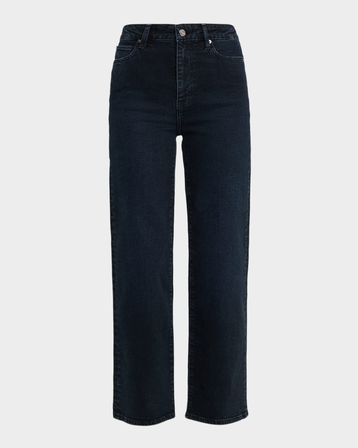 FRAME "The Wide" jeans in faded darkwash denim Approx. 11.9" rise; 27.5" inseam High rise Fivepocket style Easy fit Cropped length Button/zip fly; belt loops Cotton/elastane Machine wash cold Imported