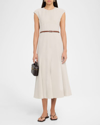 Gabriela Hearst "Crowther" dress is crafted from wool crepe featuring corset-inspired seam details Round neckline Cap sleeves A-line silhouette Hem falls below the knee Invisible back zip Wool Made in Italy
