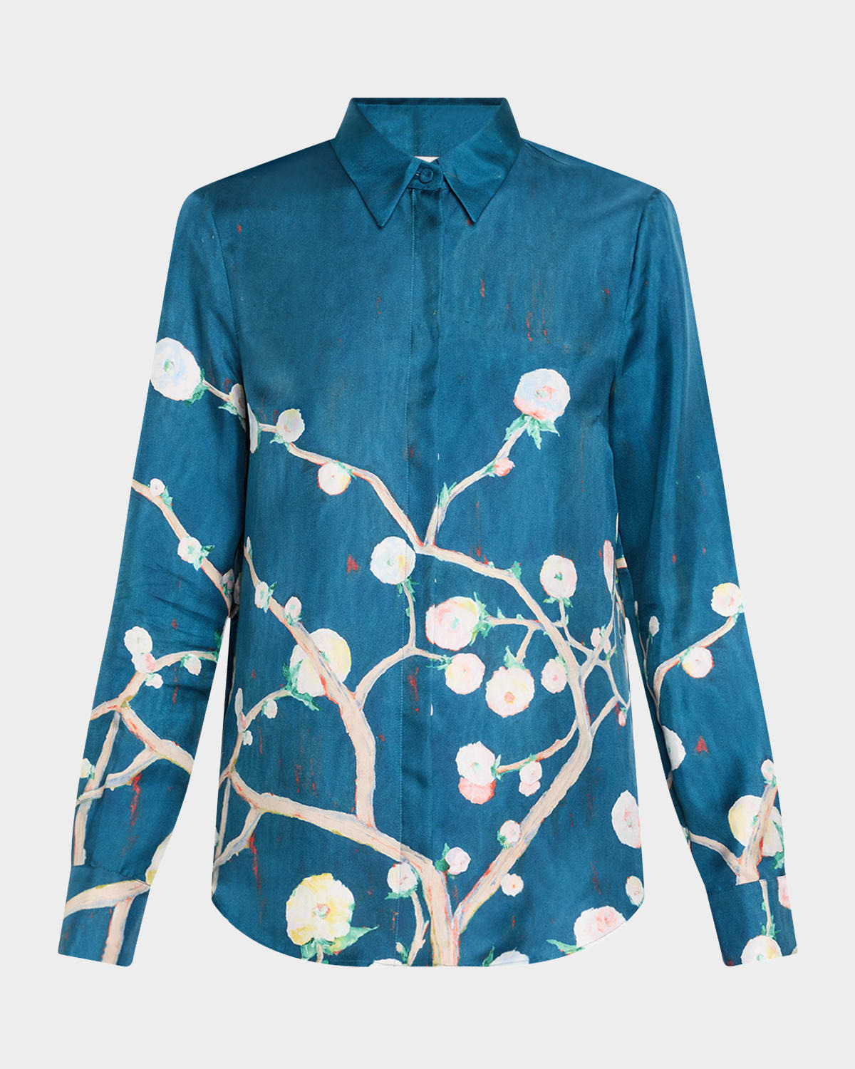 - Gabriela Hearst "Henri" blouse featuring a painterly branch print - Point collar; concealed button front - Long sleeves; button cuffs - Relaxed fit - Shirttail hem - Silk - Made in Italy