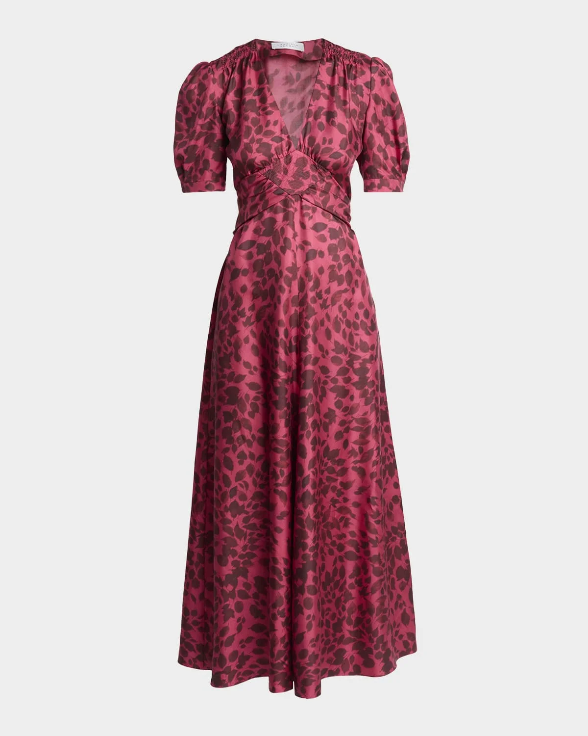 Larkin Printed Satin Puff-Sleeve Midi Dress