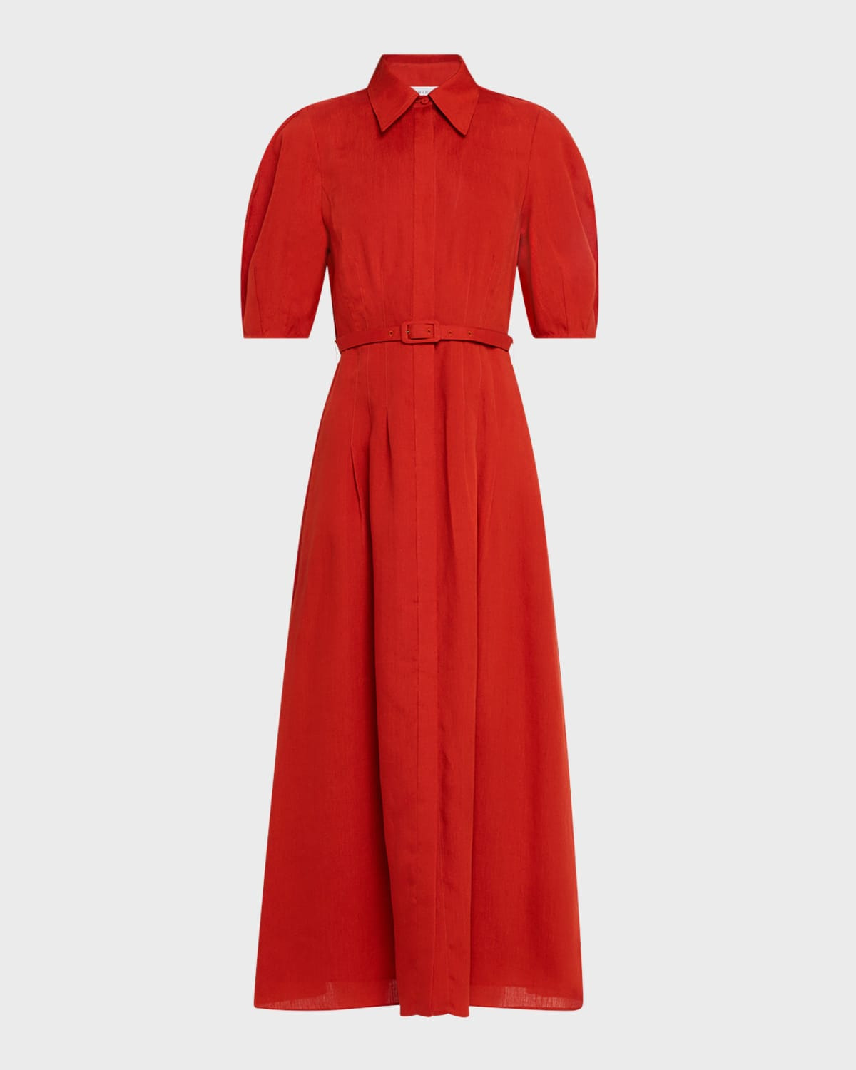 Maude Puff-Sleeve Belted Linen Midi Shirtdress