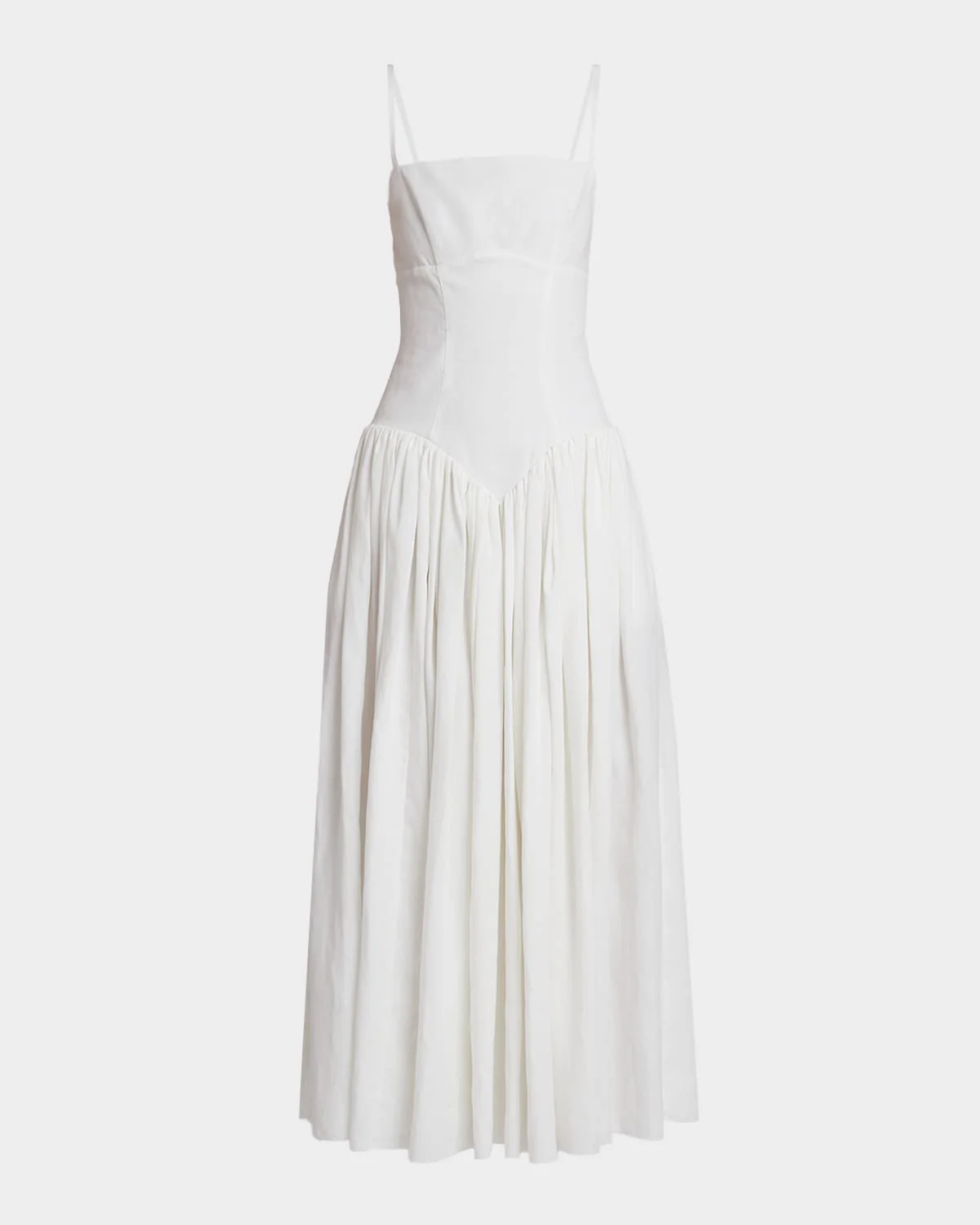Oriana Sleeveless Linen Basque-Waist Maxi Dress