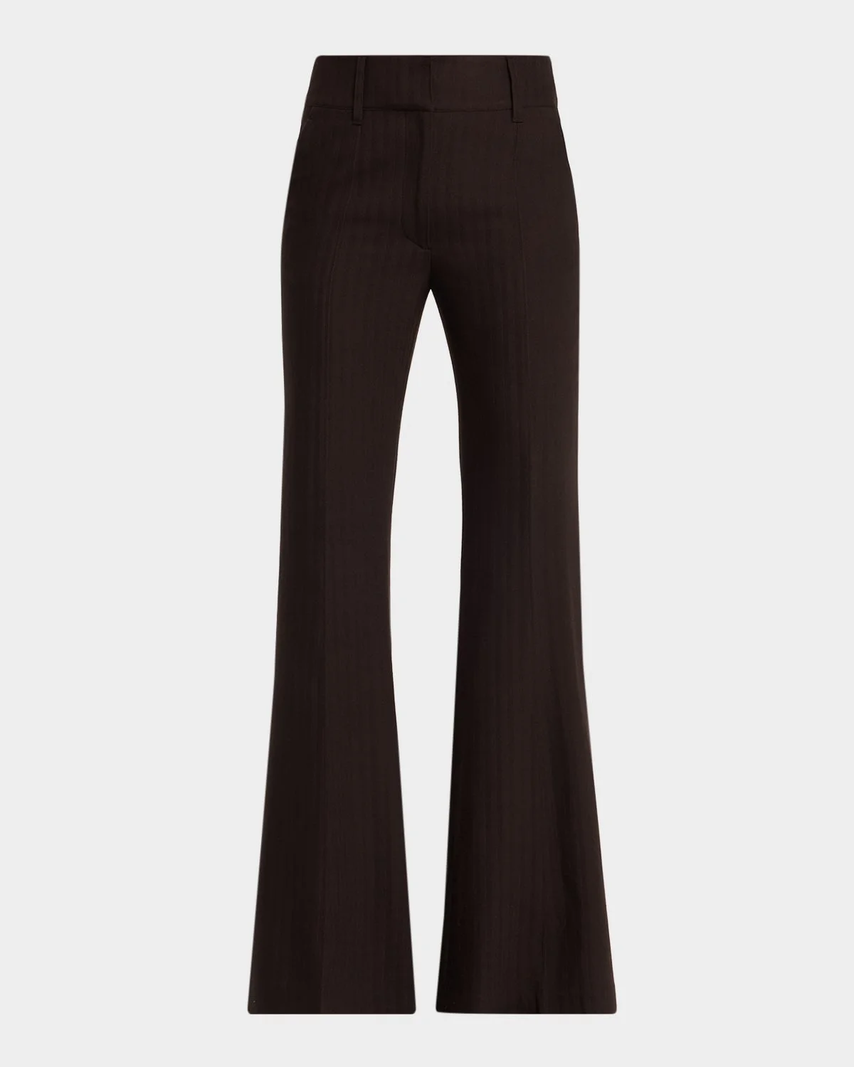 Gabriela Hearst "Rhein" pants are crafted from herringbone wool with front and back seams High rise Side slip pockets Back welt pockets Flared legs Full length Hook/zip fly; belt loops Virgin wool Made in Italy