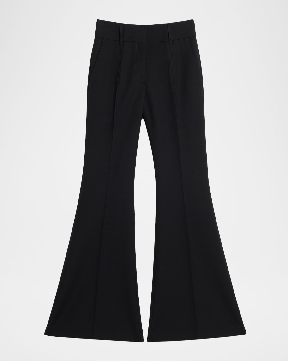 - Gabriela Hearst "Rhein" pants featuring front and back seams - Mid rise sits high on hip - Side slip pockets; back welt pocket - Flared legs - Full length - Hook/zip fly; belt loops - Virgin wool - Dry clean - Made in Italy