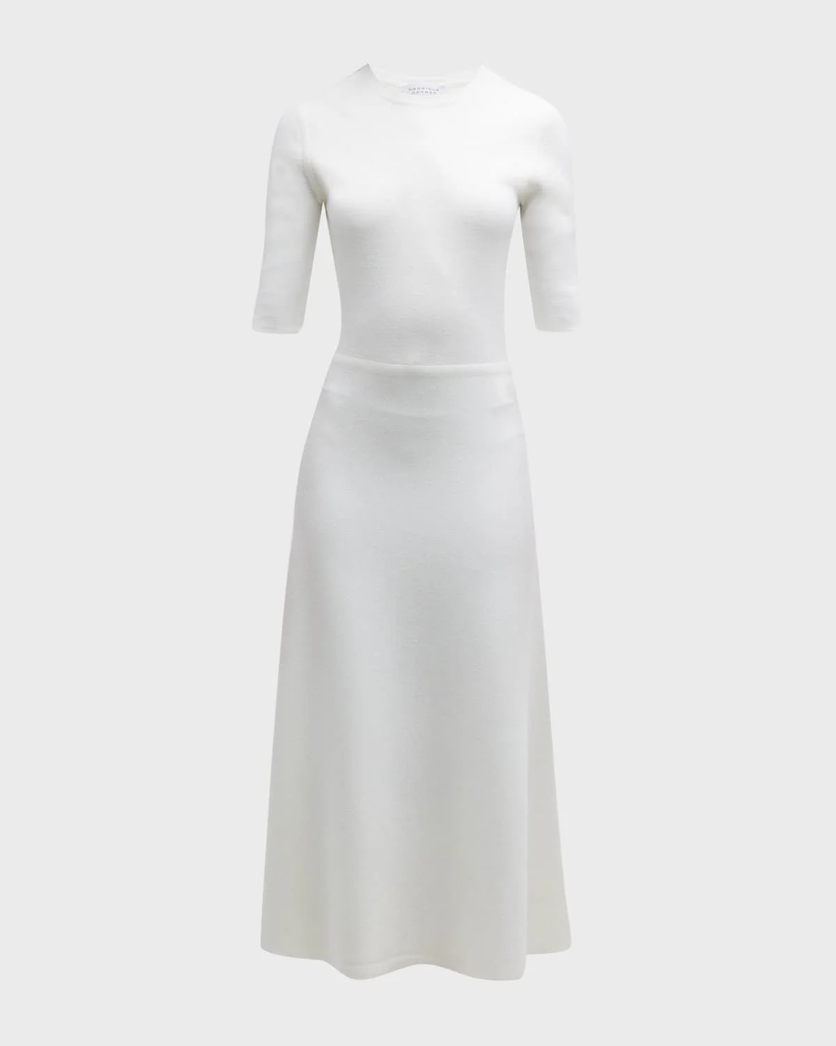 Seymore Knit Dress in Ivory Cashmere Wool with Silk