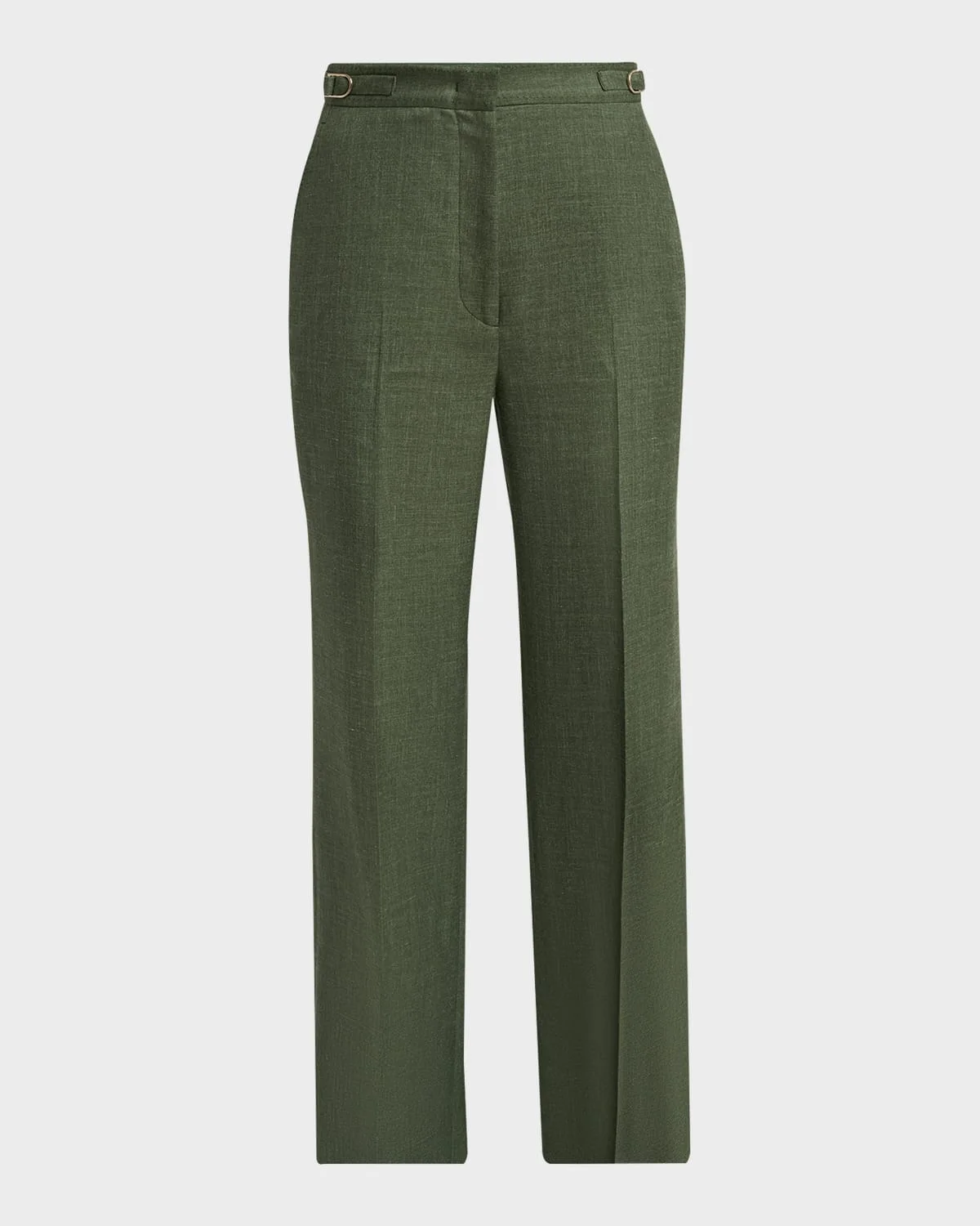 Crafted from linen-blend, the "Vesta" pants & nbsp;from Gabriela Hearst are tailored with pressed creases and waist buckle details Mid rise sits high on hip Flat front Angled side slip pockets Back welt pocket Relaxed straight & nbsp;legs Full length Hook/zip fly Virgin wool/silk/linen Professional cleaning recommended Made in Italy
