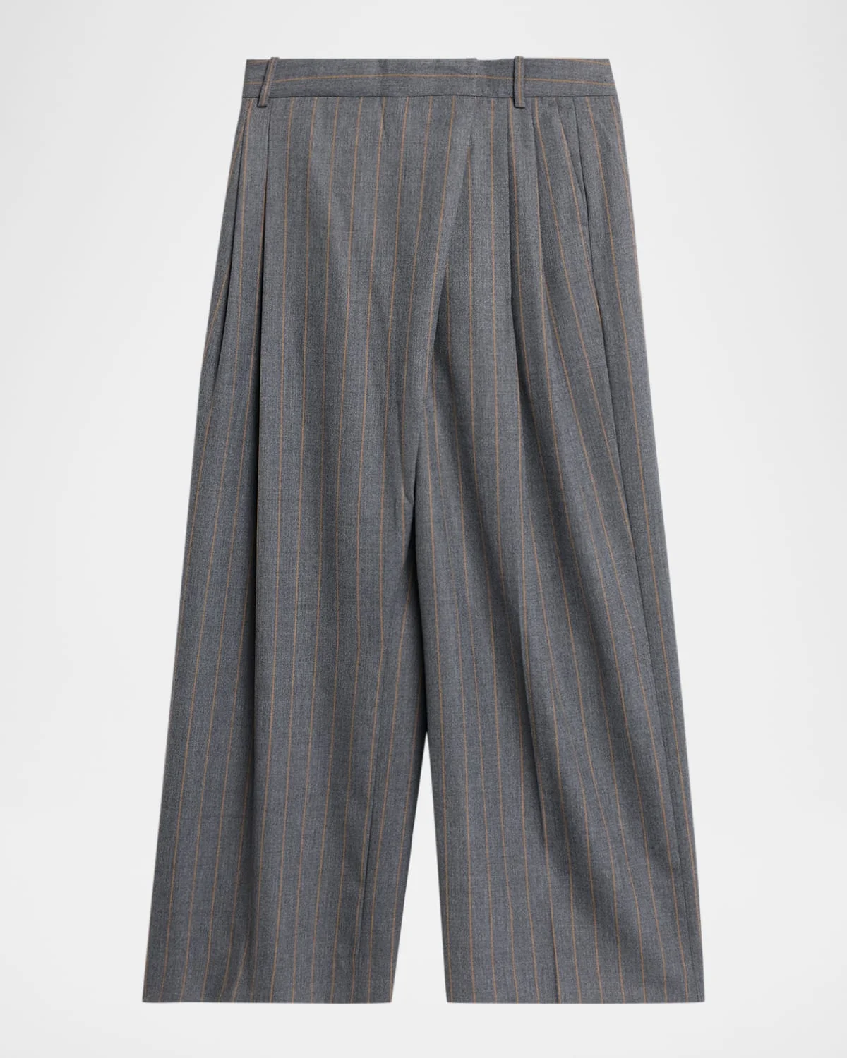 Pinstripe Brushed Wool Cross-Over Trousers