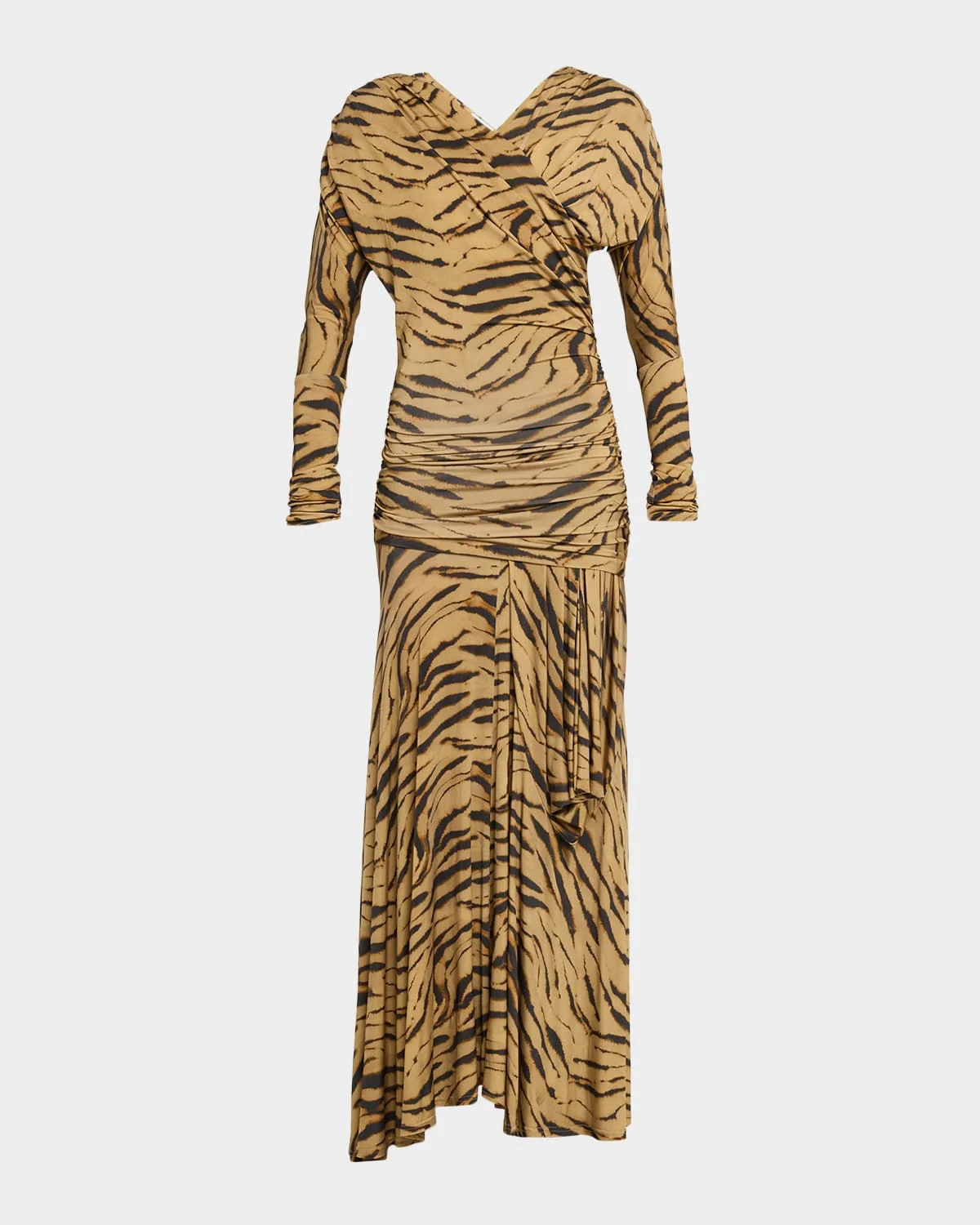 Tiger-Print Denim Maxi Dres