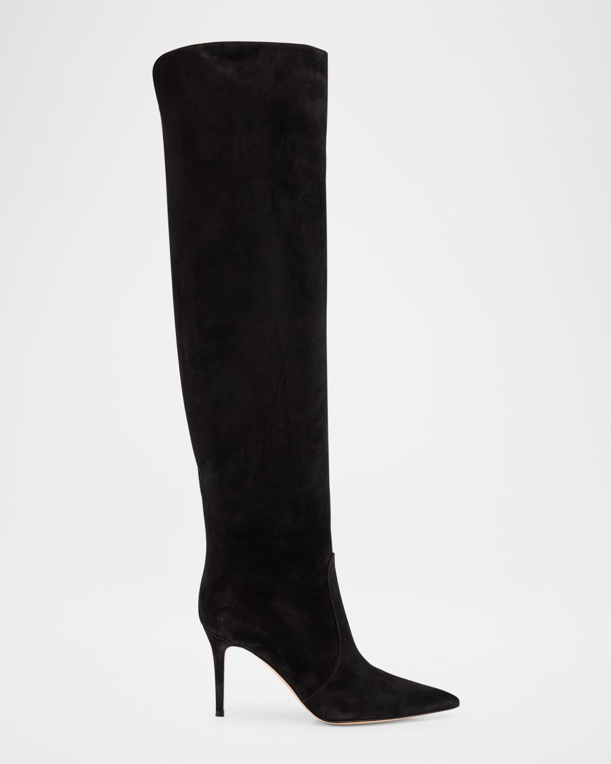 Gianvito Rossi "Hansen" suede overtheknee boots 3.25 in / 85 mm covered stiletto heel Pointed toe Pullon style Lining: Goat leather Made in Italy