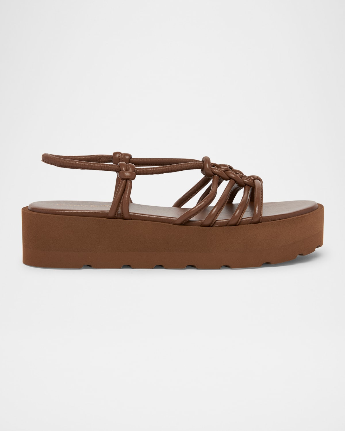 Gianvito Rossi tubular leather platform sandals 0.17 in / 5 mm flatform heel Open toe Knotted, caged vamp Slipon slingback strap Rubber outsole Made in Italy