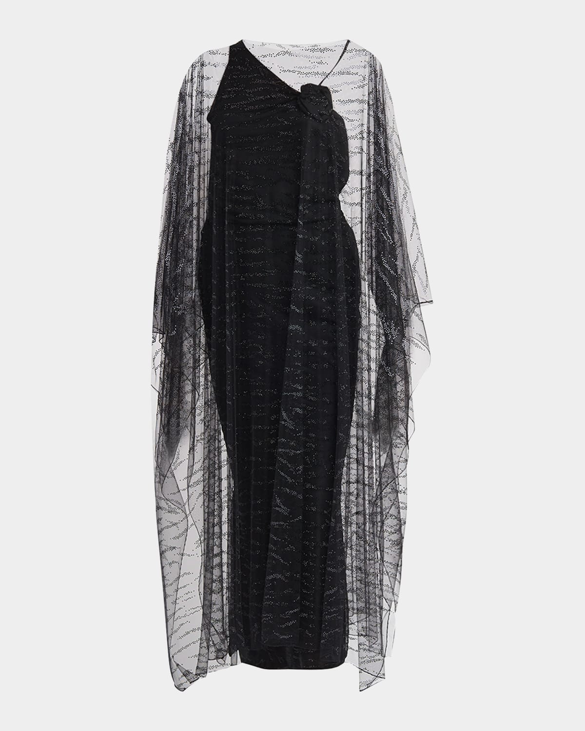 Crystal Embellished Sheer Long Cape
