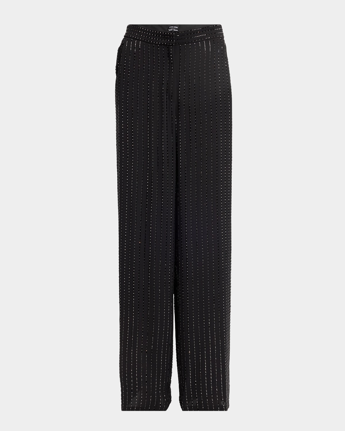 Crystal Pinstripe Straight-Leg Silk Trousers