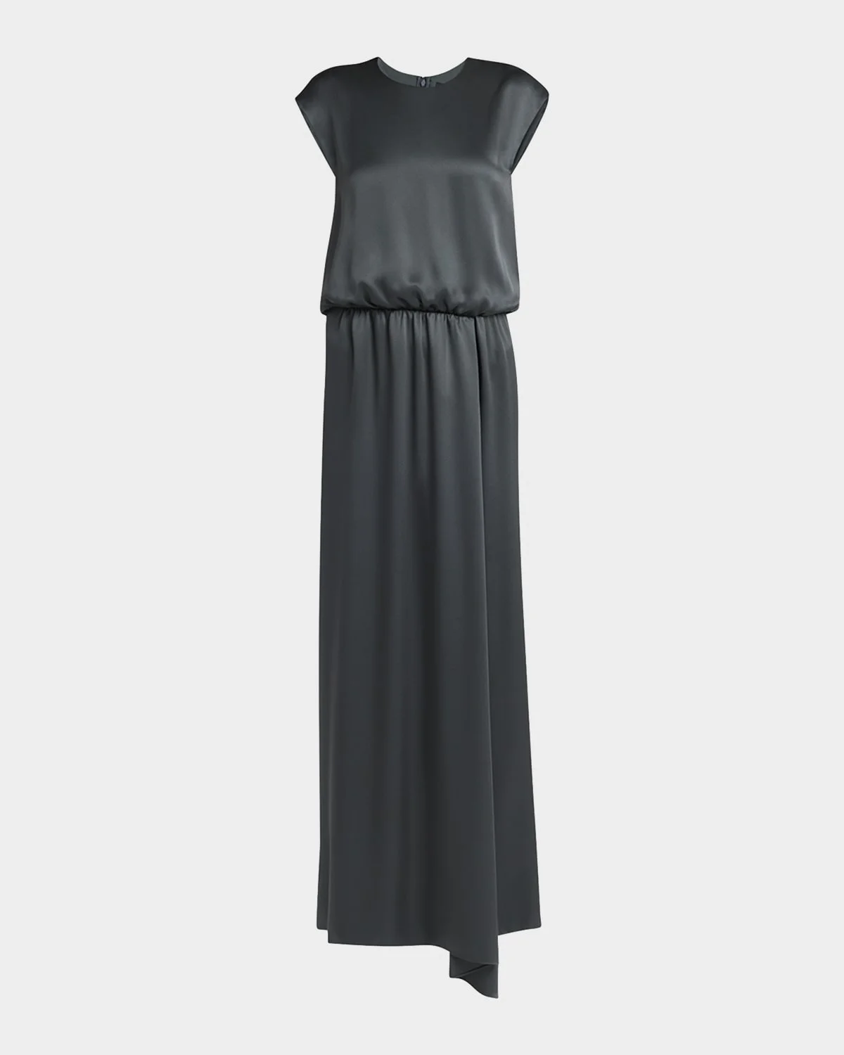 - Giorgio Armani double satin gown with a draped detail - Jewel neckline - Cap sleeves - Cinched waist - Long length - Back zip - Silk - Dry clean - Made in Italy