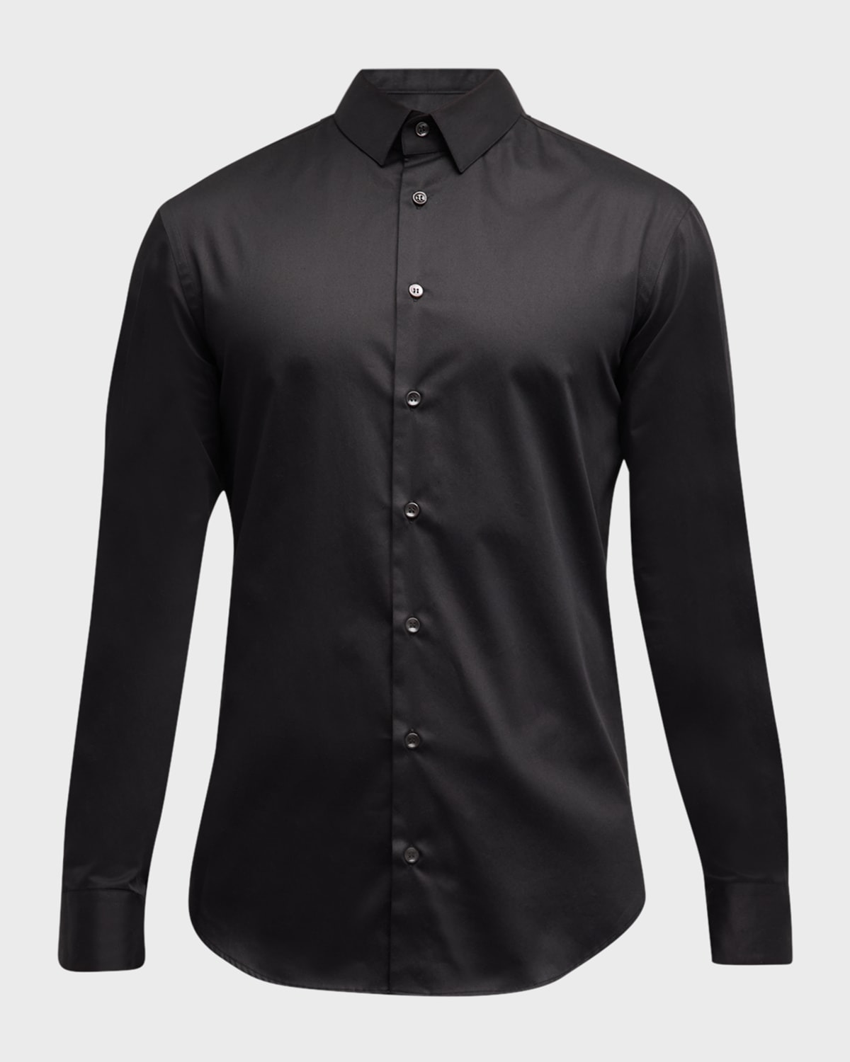- Giorgio Armani sport shirt in solid cotton - Spread collar - Long sleeves; button cuffs - Classic fit - Button-front - Cotton - Dry clean - Made in Italy - Model is 6'1"/185cm.