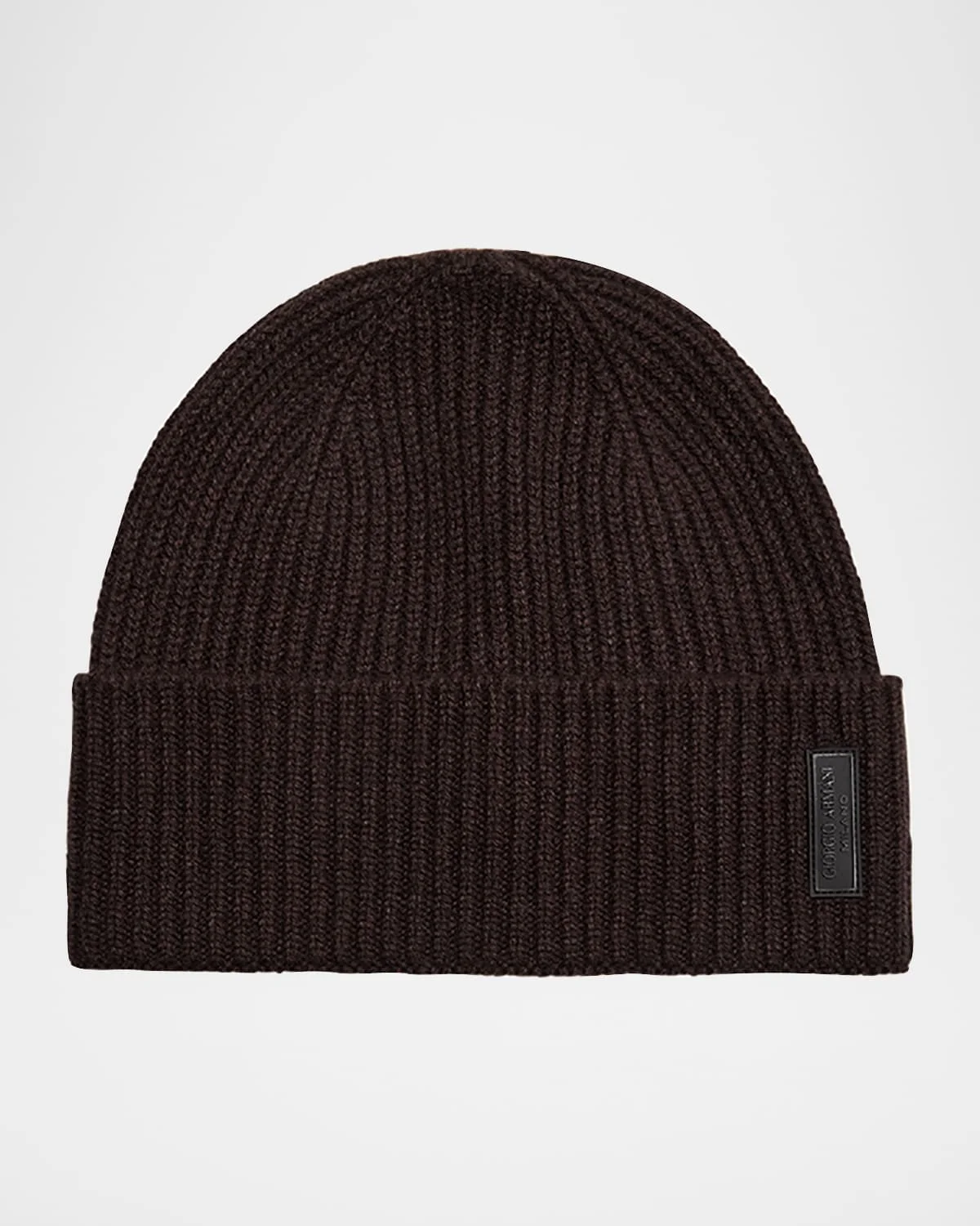 Giorgio Armani beanie hat in an ultrasoft wool and cashmere ribknit defined by a distinctive label on the cuff Foldover cuff Wool/cashmere Dry clean Made in Italy