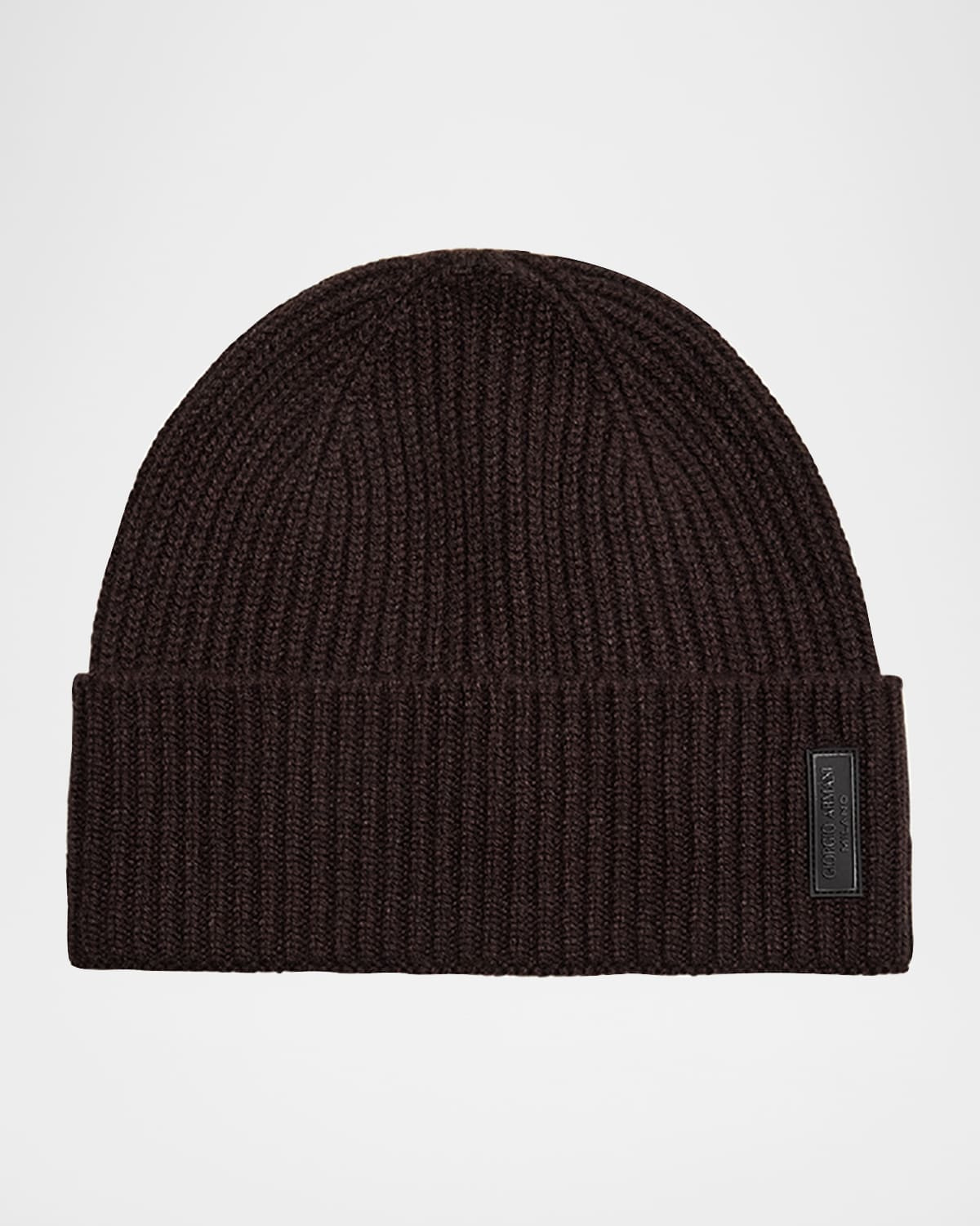 Men's Cashmere and Wool Cuff-Label Beanie Hat
