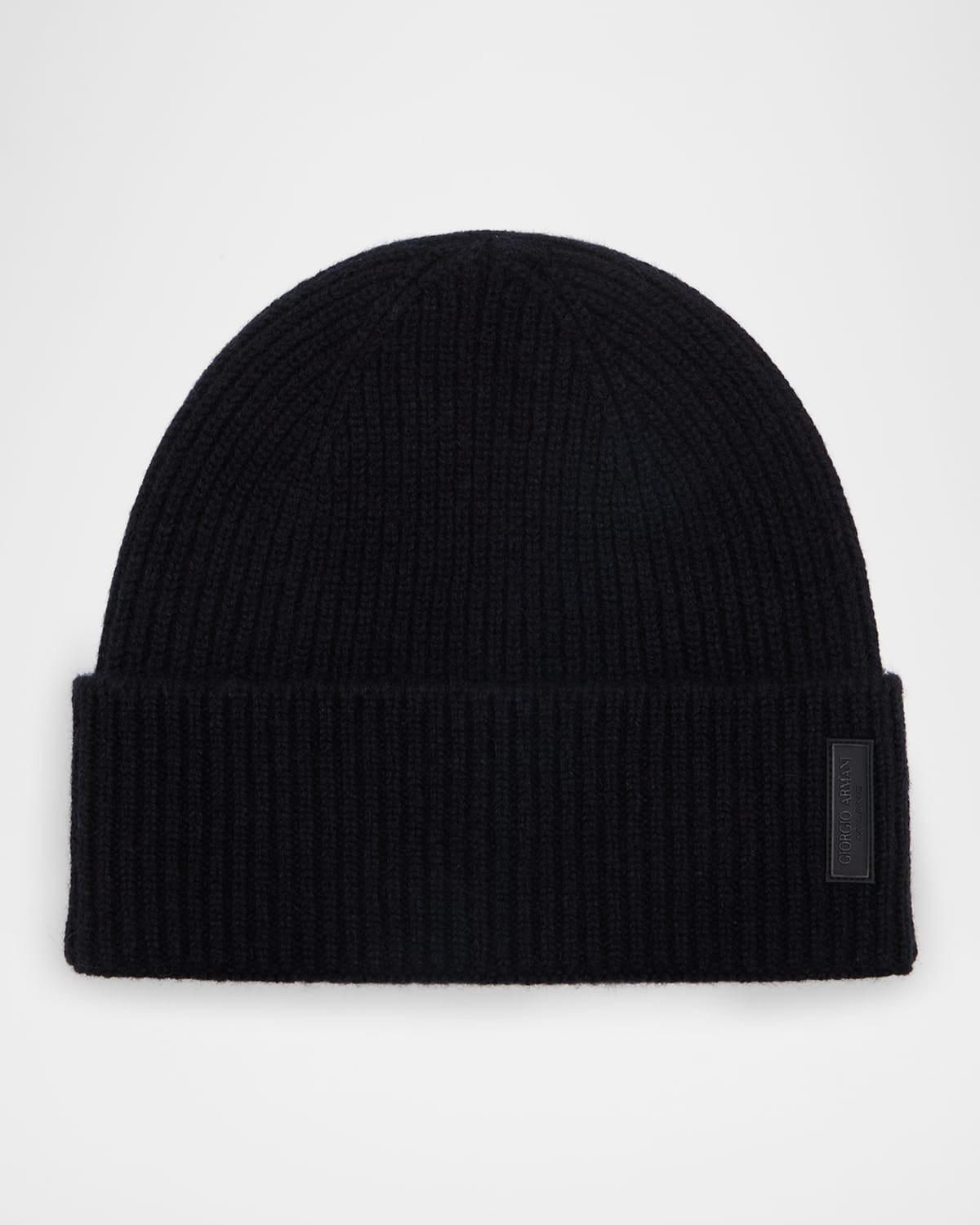 Men's Cashmere and Wool Cuff-Label Beanie Hat
