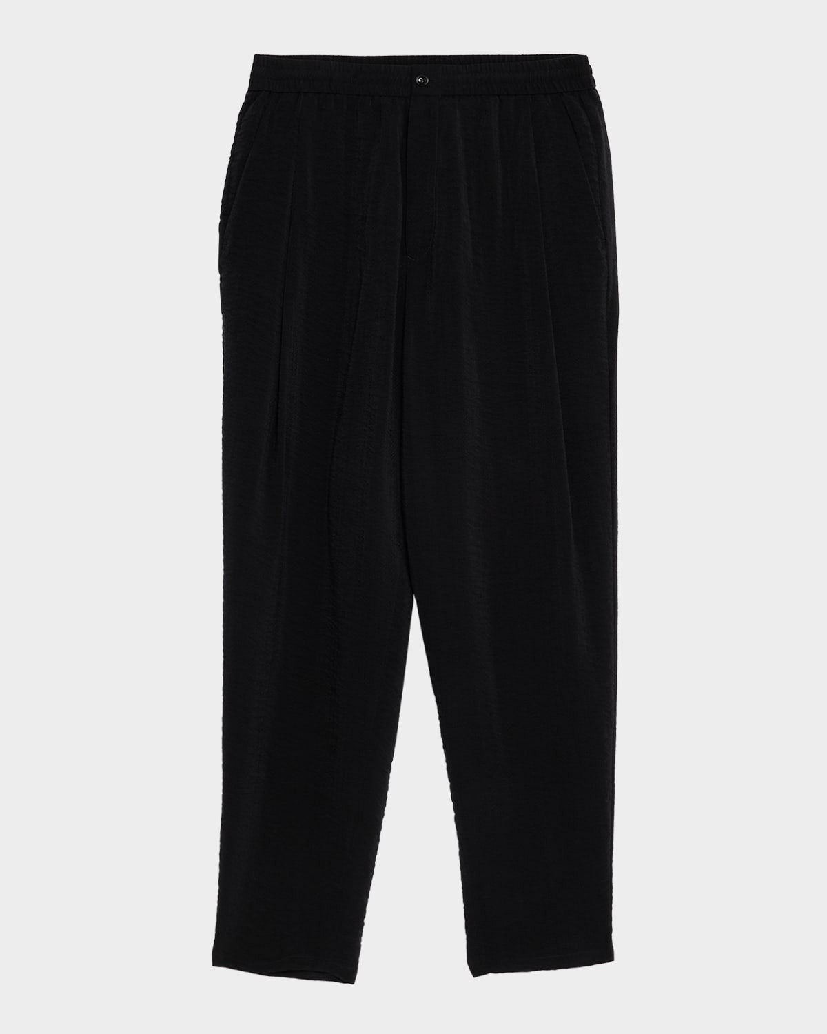 - Giorgio Armani trousers are crafted in a fluid-like cupro blend with a silky finish. - Elasticized drawstring waist - Pleated front - Side seam pockets - Back welt pockets - Full length - Loose fit through straight legs - Pull-on style - Cupro/nylon/polyamide - Dry clean - Made in Italy