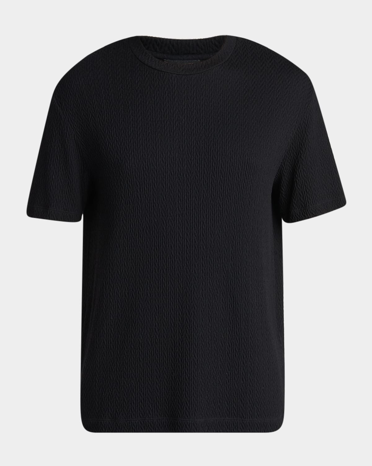 - Giorgio Armani T-shirt, showcasing a unique diagonal texture - Crew neckline - Short sleeves - Pullover style - Viscose/nylon/polyamide - Dry clean - Made in Italy