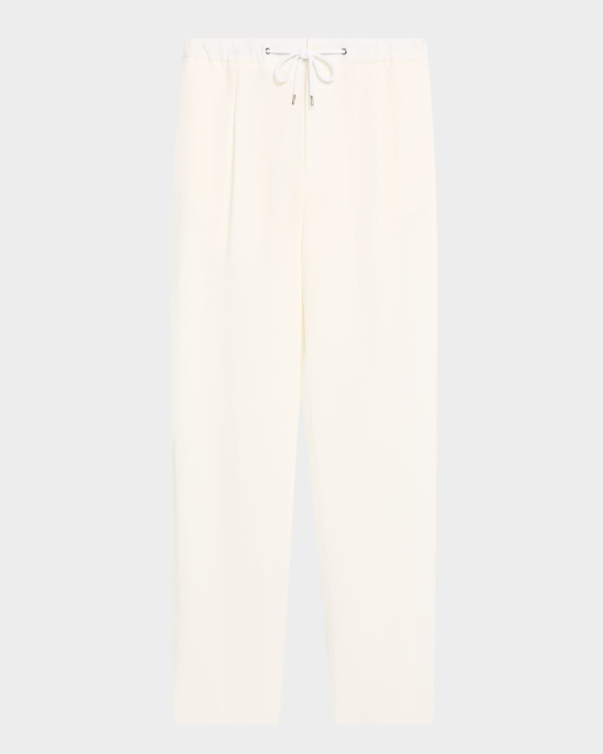 - Giorgio Armani trousers in solid linen - Elasticized drawstring waist - Pleated front - Side seam pockets - Back welt pockets - Full length - Loose fit through straight legs - Pull-on style - Dry clean - Made in Italy