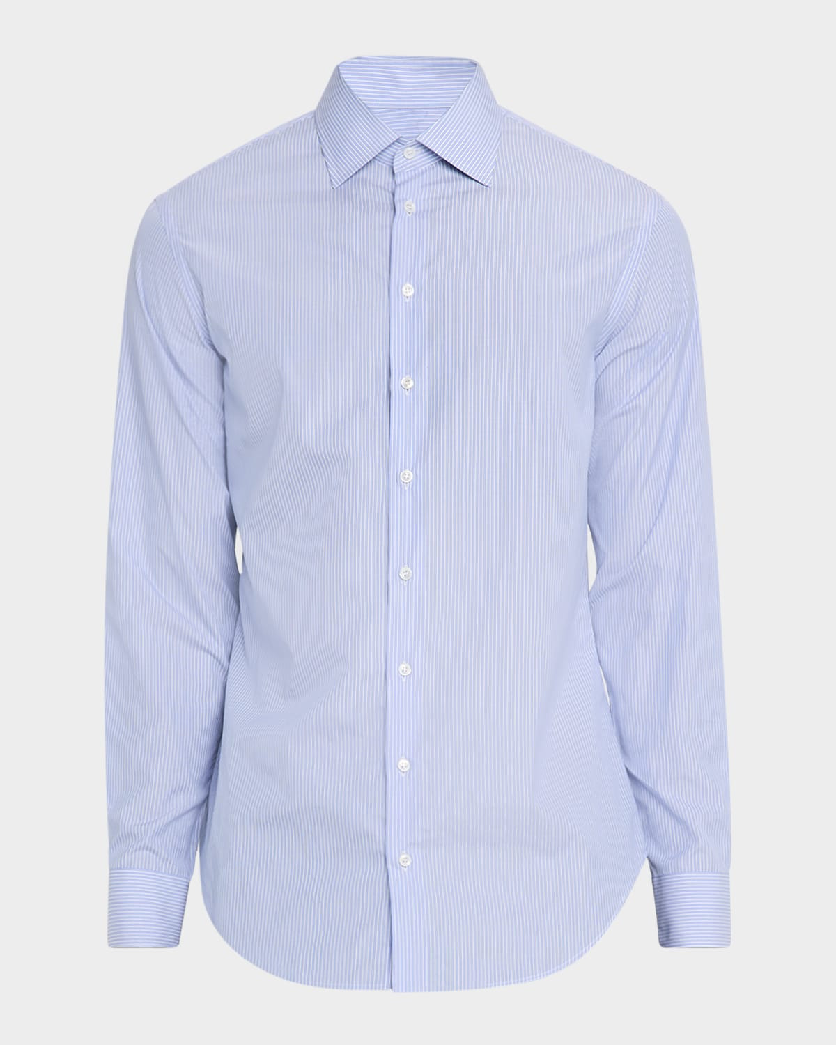 - Giorgio Armani dress shirt in breathable cotton showcasing a vertical stripe print - Genuine mother-of-pearl buttons - Spread collar - Button placket - Long sleeves - Mitered barrel cuffs - Back yoke - Shirttail hem - Classic fit - Cotton - Dry clean - Made in Italy