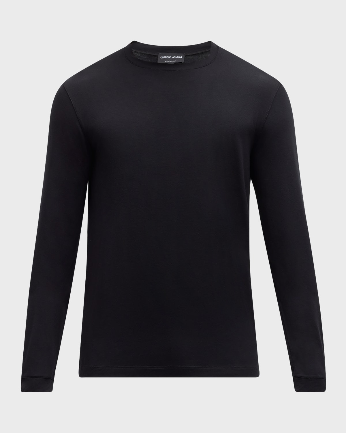 - Giorgio Armani solid T-shirt - Crew neckline - Long sleeves - Pullover style - Cotton - Made in Italy - Model is 6'1"/185cm.