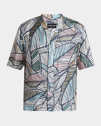 Men's Palm-Print Silk Twill Camp Shirt