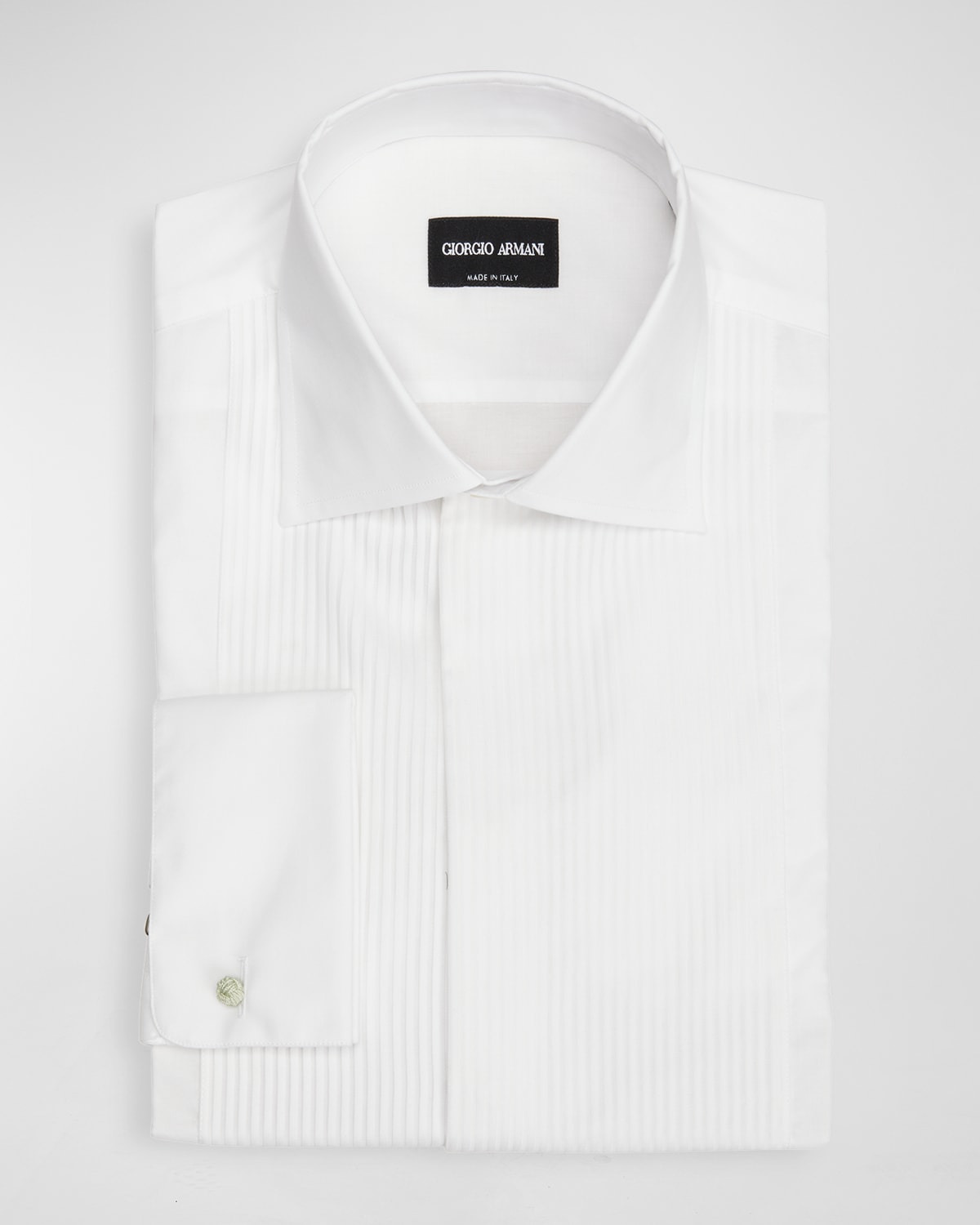 - Giorgio Armani tuxedo shirt with pleated bib - Spread collar - Concealed button placket - Long sleeves - French cuffs - Cotton - Made in Italy - Model is 6'1"/185cm.