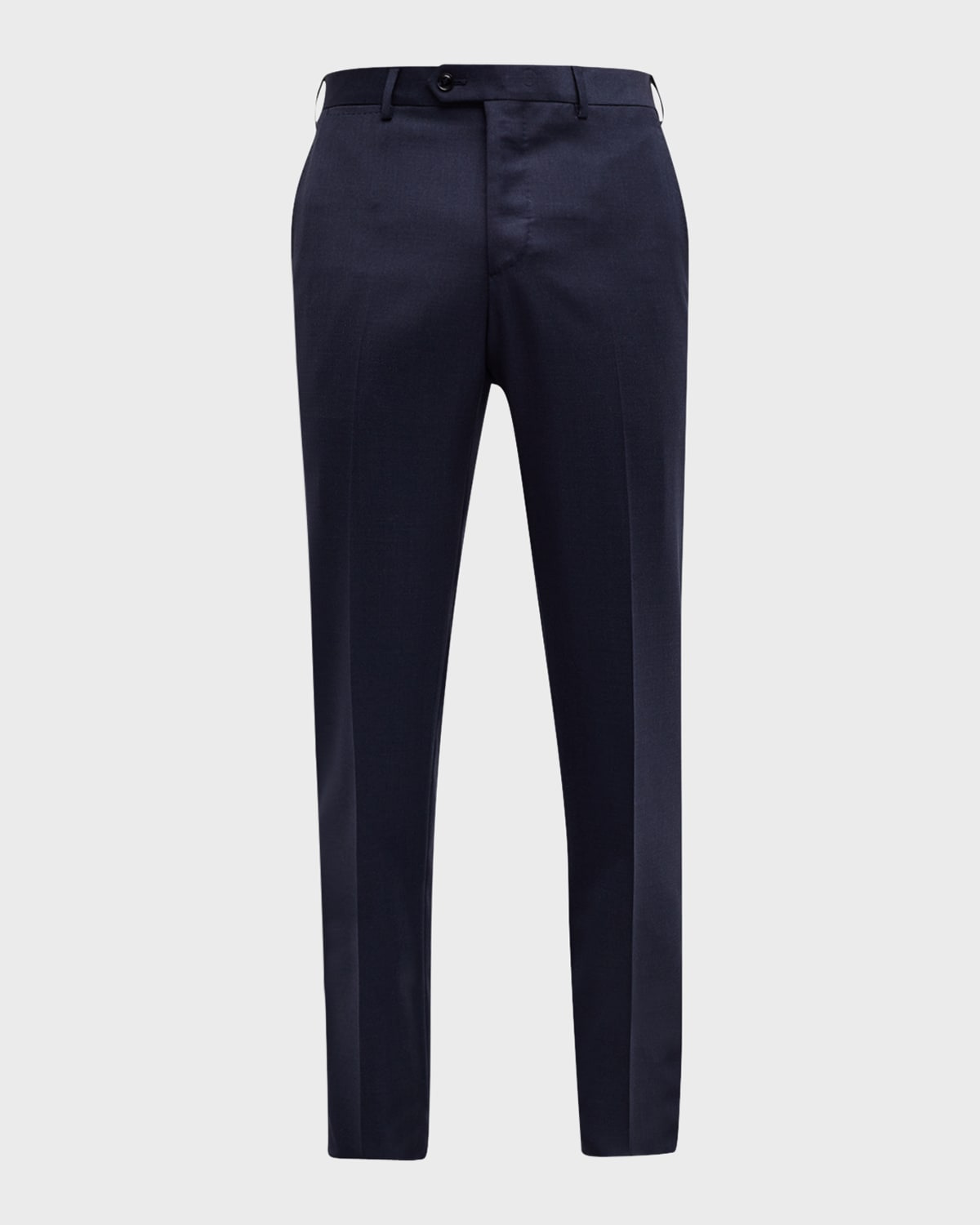 - Giorgio Armani dress pants in solid virgin wool - Regular rise - Button tab/zip closure - Side seam pockets - Back welt pockets - Full length - Straight legs - Dry clean - Made in Italy - Model is 6'1"/185cm.
