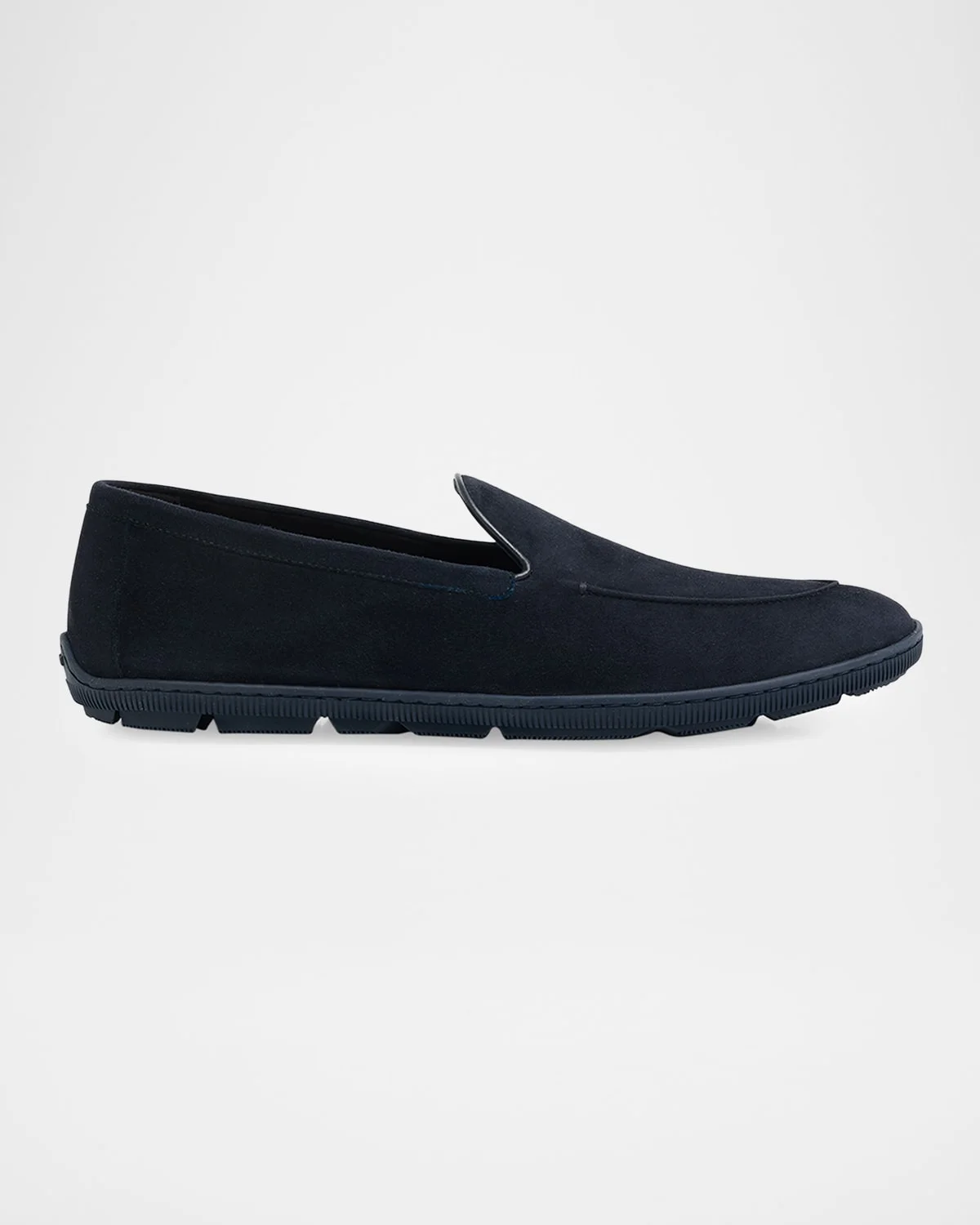 Giorgio Armani loafers in supple suede showcasing a toneontone design Flat heel Round apron toe Notched vamp Rubber outsole with tread Slipon style Made in Italy