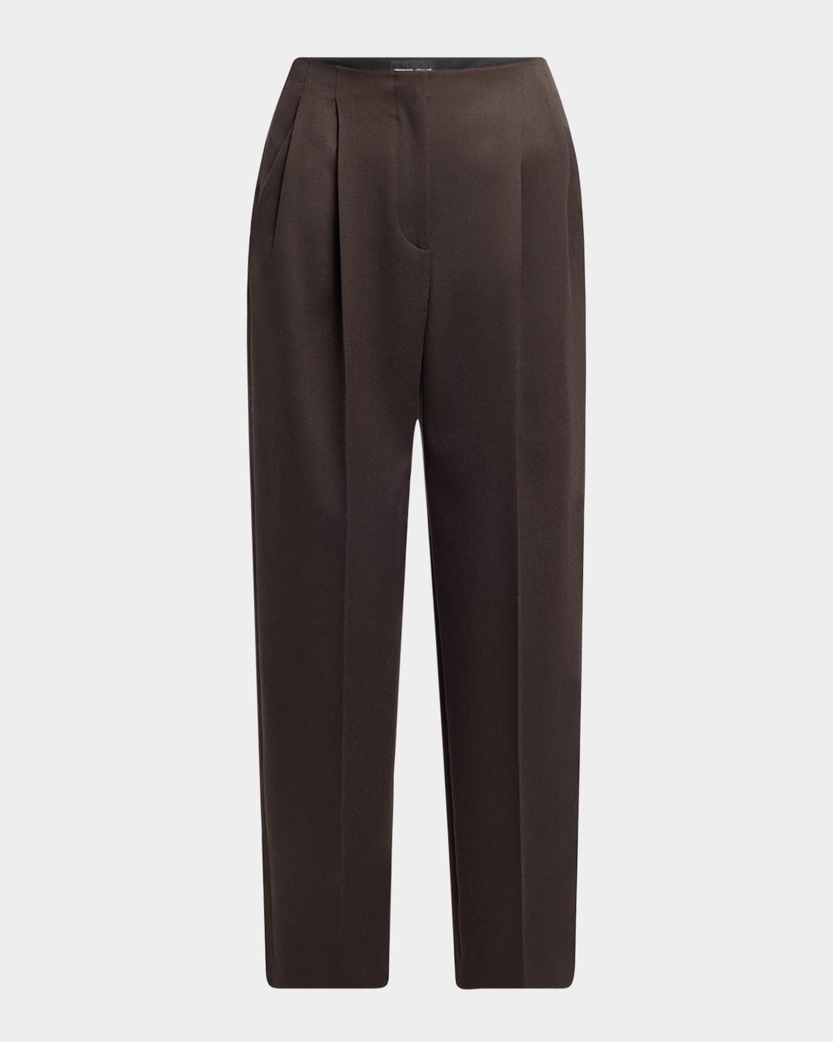 - Giorgio Armani trousers featuring a double pleated front - High rise - Angled side slip pockets - Back welt pocket - Straight legs - Cropped at the ankle - Hook/zip fly - Wool - Dry clean - Made in Italy