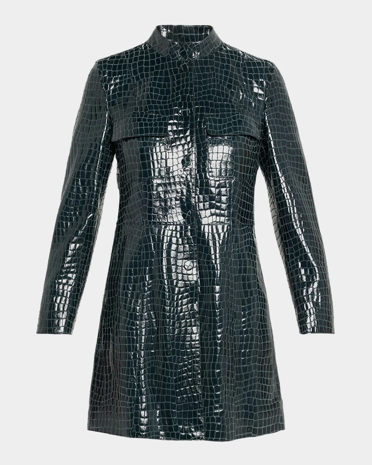 Shiny Croc-Print Leather Trench Coat