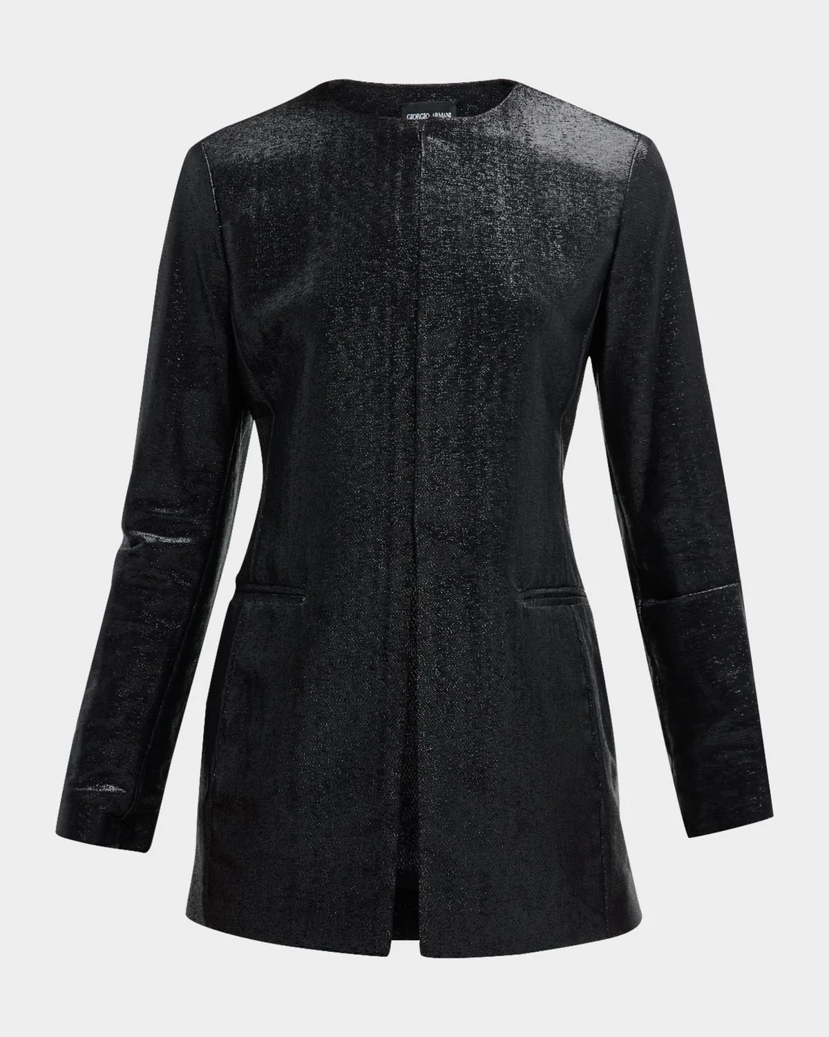 Giorgio Armani sparkle metallic jacket Round neckline; hookandeye front Long sleeves Side welt pockets Slim fit Polyamide/silk Dry clean Made in Italy
