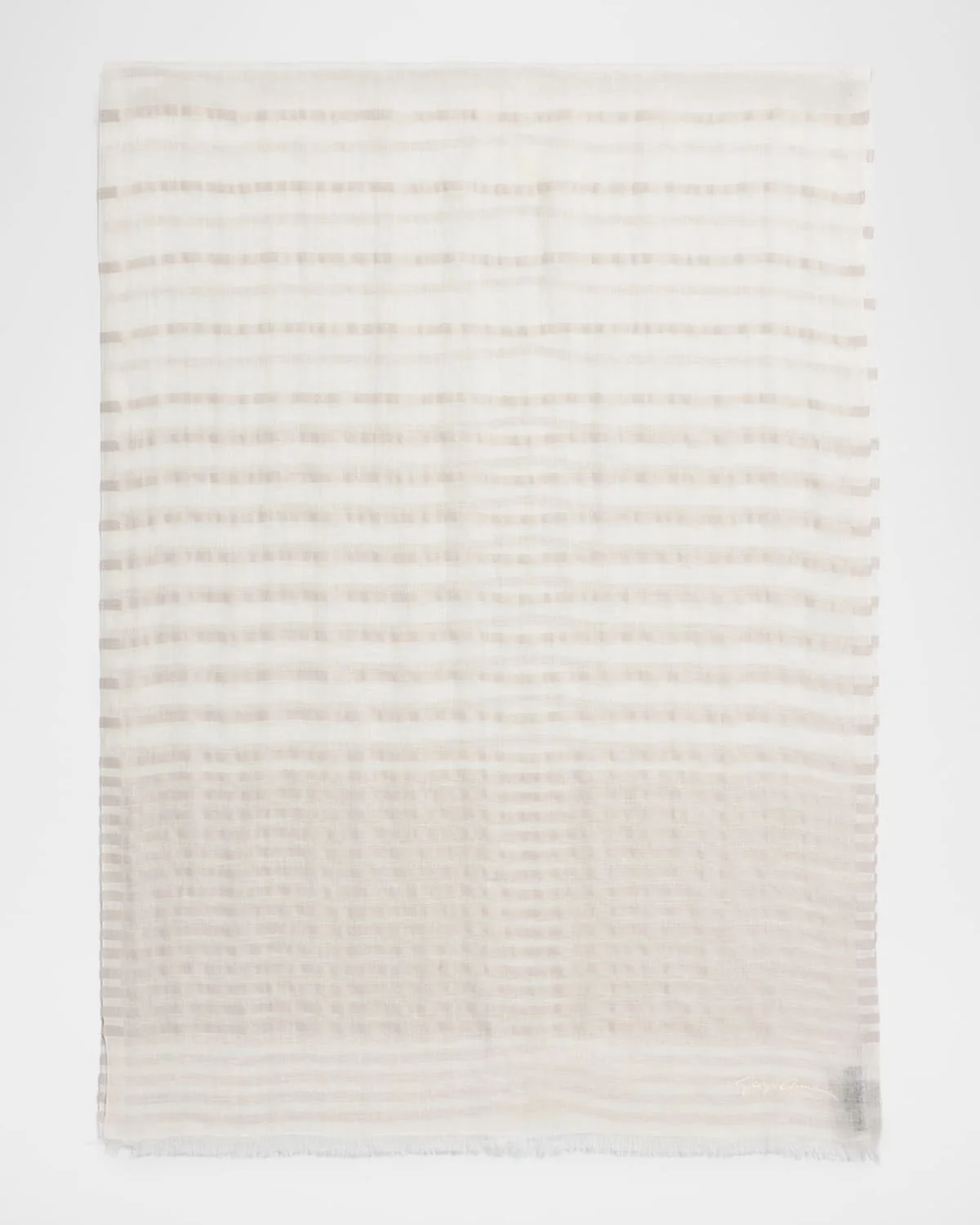 Striped Linen-Cotton Jacquard Stole, 80" x 28"
