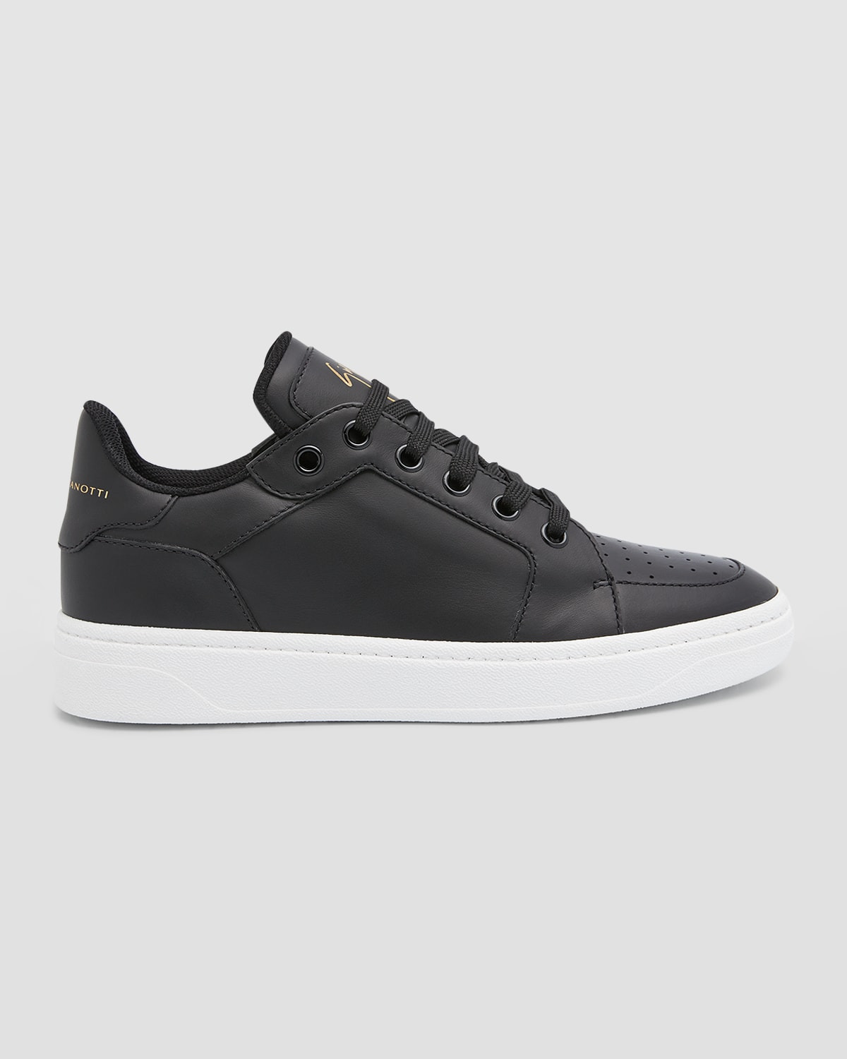 - Giuseppe Zanotti "GZ 94" low-top sneakers in leather - Flat heel - Perforated round toe - Lace-up vamp - Logo signature at tongue and heel - Padded collar - Fabric lining - Logo lettering at backstay - Rubber outsole - Made in Italy