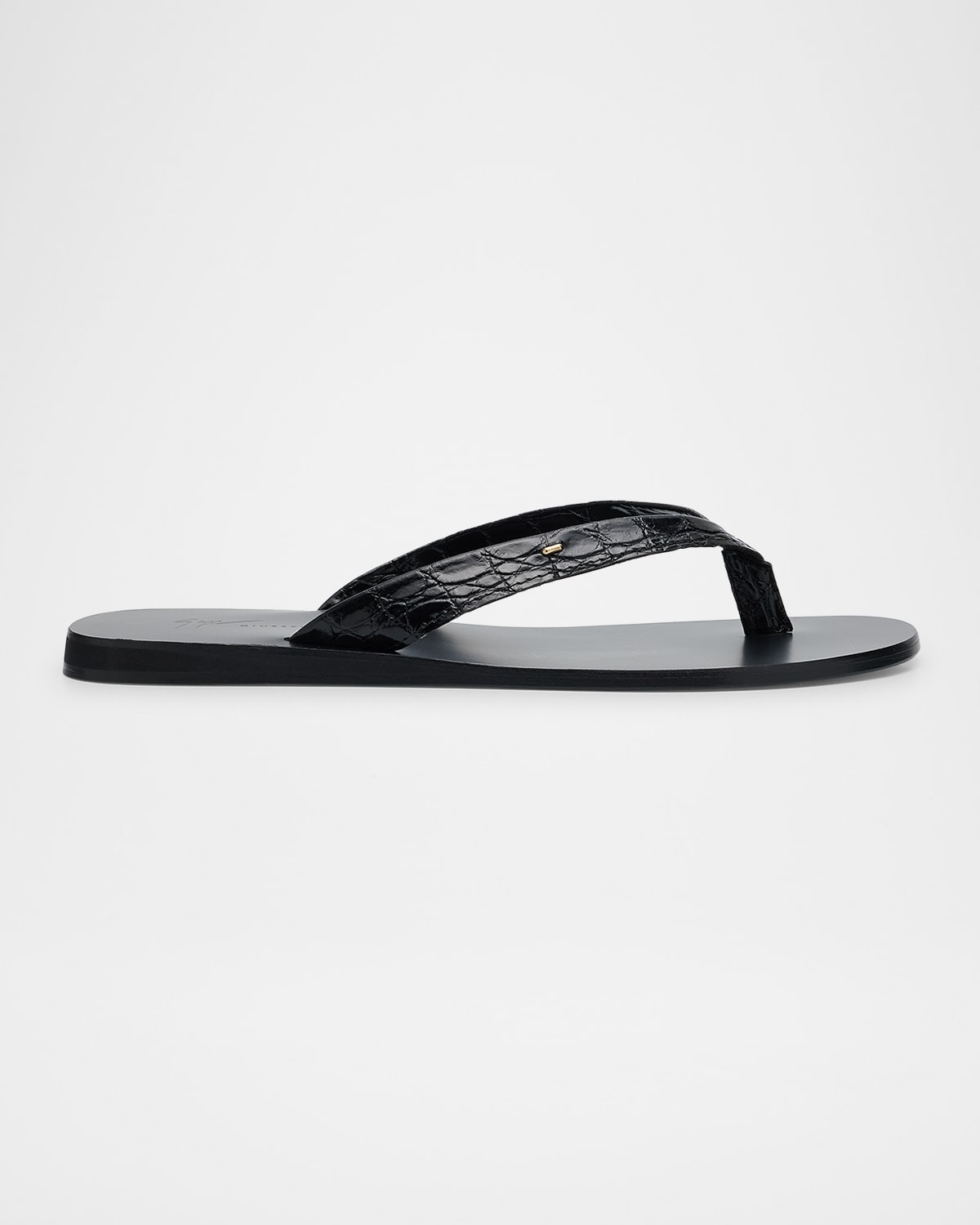 - Giuseppe Zanotti "Hally 10" flip flops in leather - Flat heel - Open toe - Croc-effect leather thong strap - Leather outsole - Easy slide style - Made in Italy