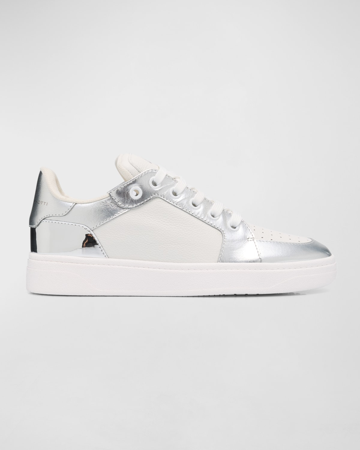 - Giuseppe Zanotti low-top sneakers in grained leather with metallic trim - Flat heel - Perforated round toe - Lace-up vamp - Logo signature on the tongue - Padded collar - Logo on the backstay - Raised heel logo - Rubber outsole - Made in Italy