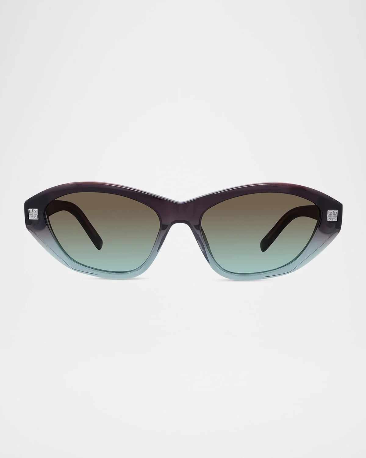 Givenchy feminine cateye sunglasses in acetate Features a discreet 4G metal signature on the front Lens/bridge/temple (in mm): 5517140 Saddle nose bridge Logo on temples Thin, tapered arms 100% UVA/UVB protection Imported