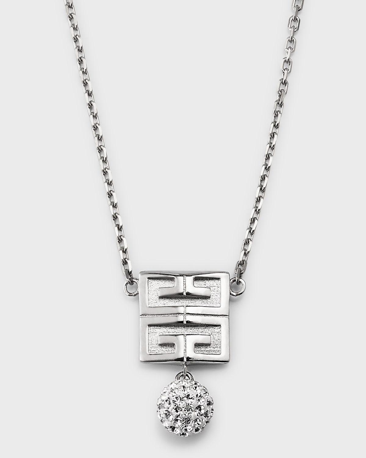 - Givenchy necklace with signature 4G pendant and ball charm - Silvertone brass and crystals - Lobster clasp - Made in Italy