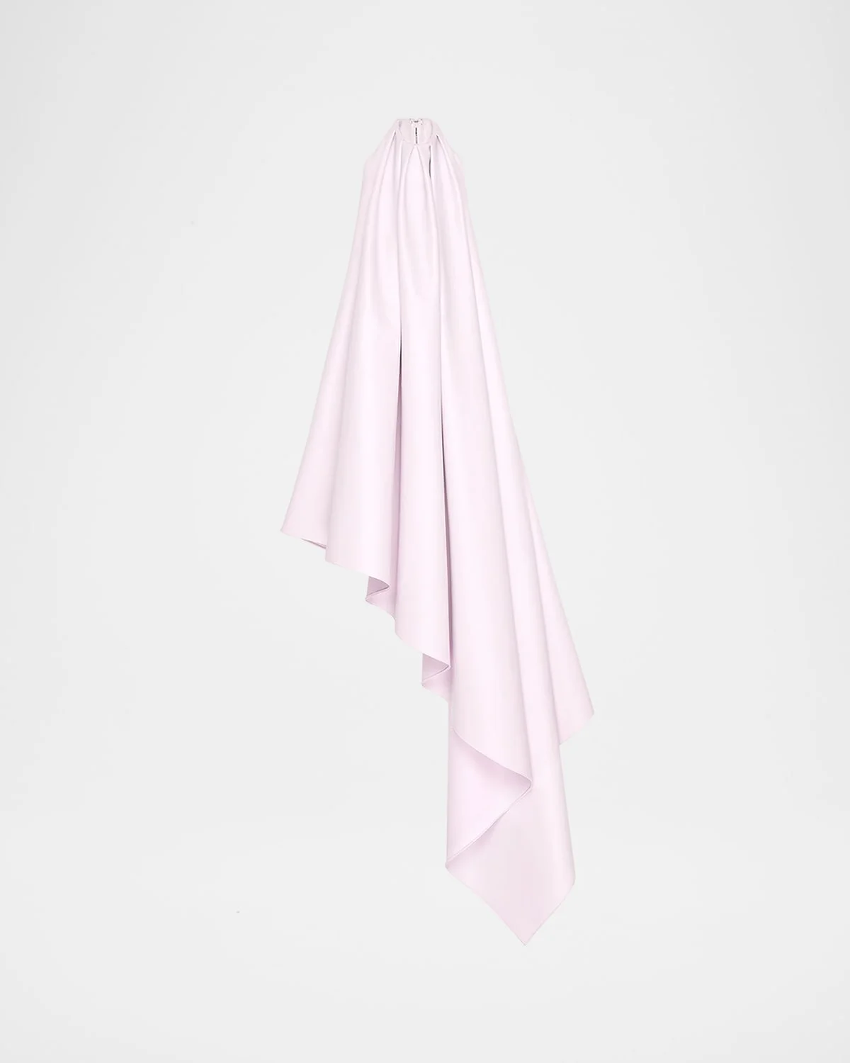 Crafted from supple calf leather, this Givenchy dress features a dramatic asymmetric drape for sculptural elegance. Halter neckline Sleeveless Shift silhouette Hem falls below the knee Back zip Leather Made in Italy