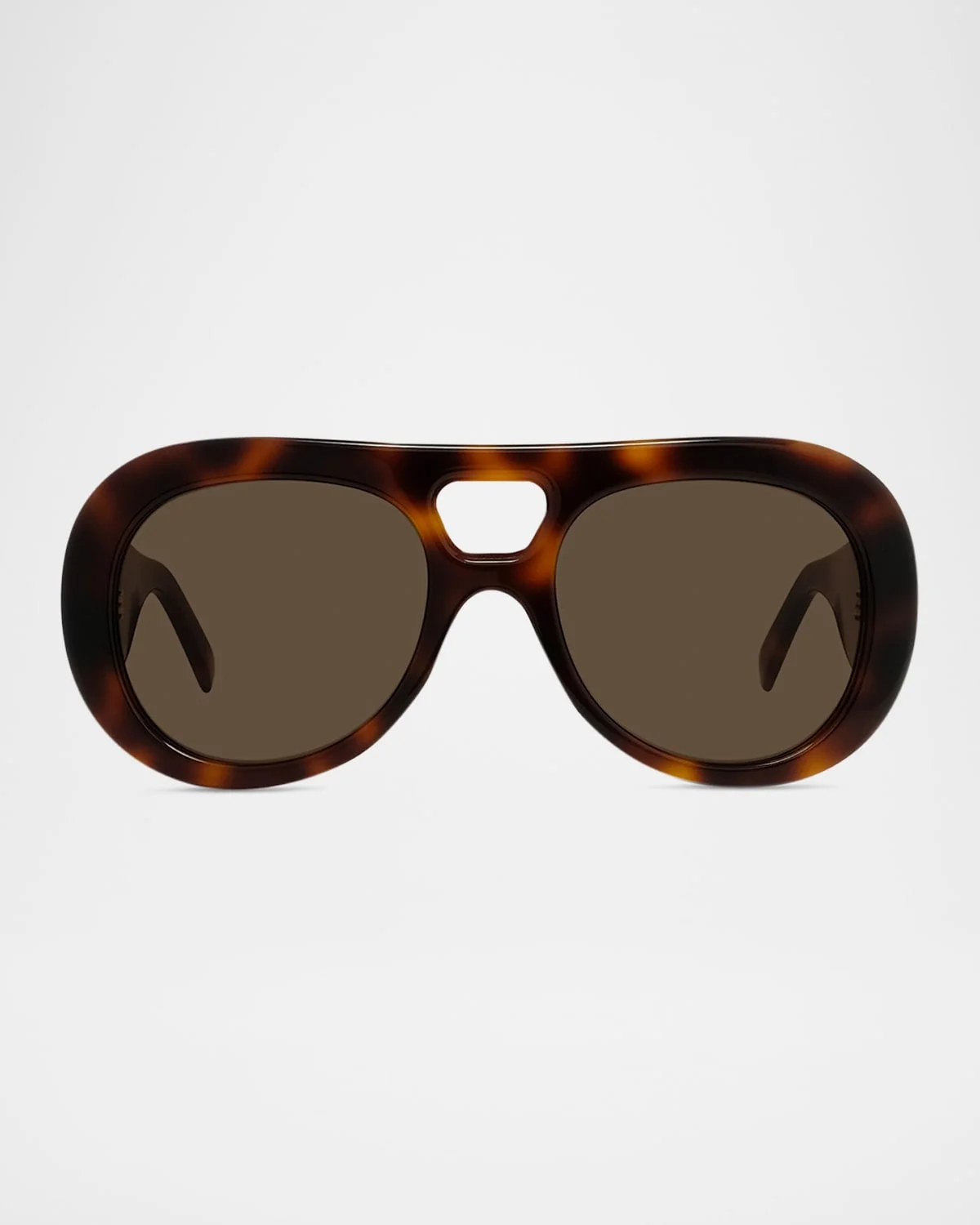 Givenchy debuts these "Bold" sunglasses, designed in tortoiseshell acetate. The pilotshaped frame is finished with golden logo text and shiny hinges. Eye/bridge/temple (in mm): 5319135 Double bridge GIVENCHY signature on the temples Wide, tapered arms 100% UVA/UVB protection Clean regularly with a soft cloth Imported