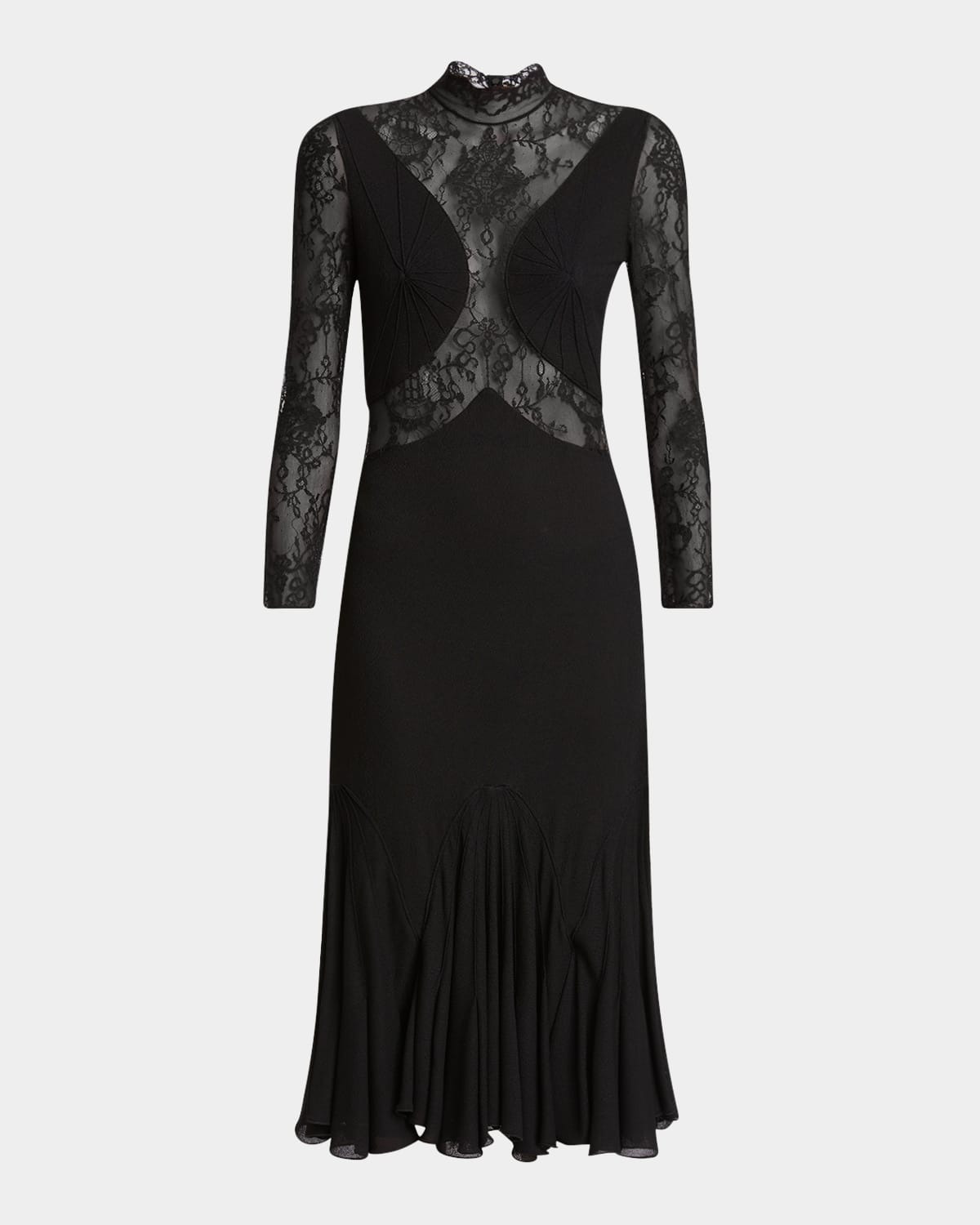 - Givenchy dress featuring lace inset and flounce skirt godets - Mock neckline - Bracelet sleeves - Fit-and-flare silhouette - Knee length - Back zip - Viscose - Made in Italy