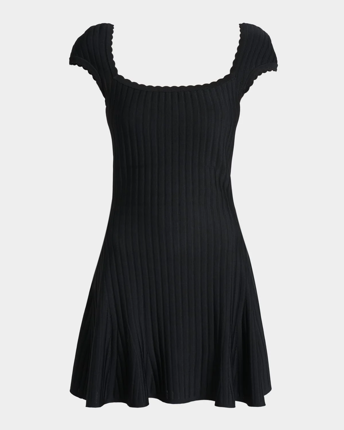 Givenchy dress is crafted from pleated knti accented with scalloped edges Square neckline Cap sleeves Aline silhouette Mini length Invisible side zip Viscose/wool/nylon/polyamide Made in Italy